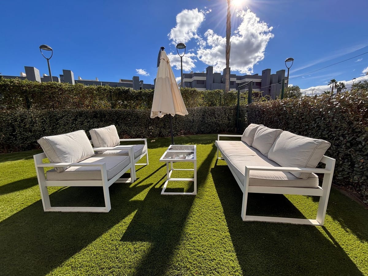 Modern Mediterranean corner ground-floor apartment located between Estepona and Puerto Banús, offering a unique opportunity to enjoy an exclusive lifestyle in the sought-after area of La Resina. Featuring three bedrooms and two bathrooms, this property stands out for its contemporary design and seamless connection between indoor and outdoor spaces. Its south-facing orientation ensures natural light throughout the day, while the spacious private garden with pool views creates an ideal setting for relaxation or social gatherings in total privacy