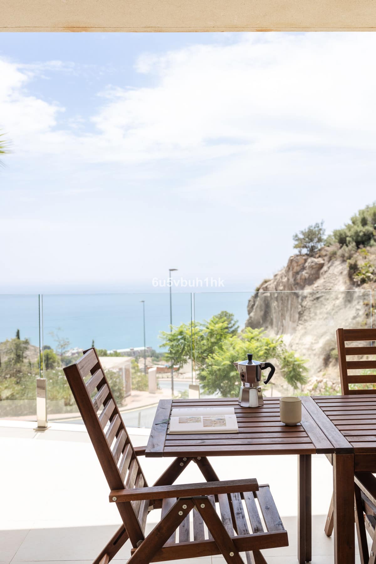 Spectacular apartment in Benalmádena with frontal views to the sea that you can enjoy from the living room and the master bedroom. It consists of 3 bedrooms, one of them en suite, and the other two share another bathroom with a shower. Fully furnished kitchen open to the living room, leading to the terrace. Large laundry room and terrace of approximately 85 m2. All this includes, community infinity pool with sea views, indoor heated pool, gym, pilates room and sauna. Features like as Air Conditioning, Under Floor Heating, Domotic system, pre-instalation of alarm. This apartment is located in a gated community with maintenance staff.
