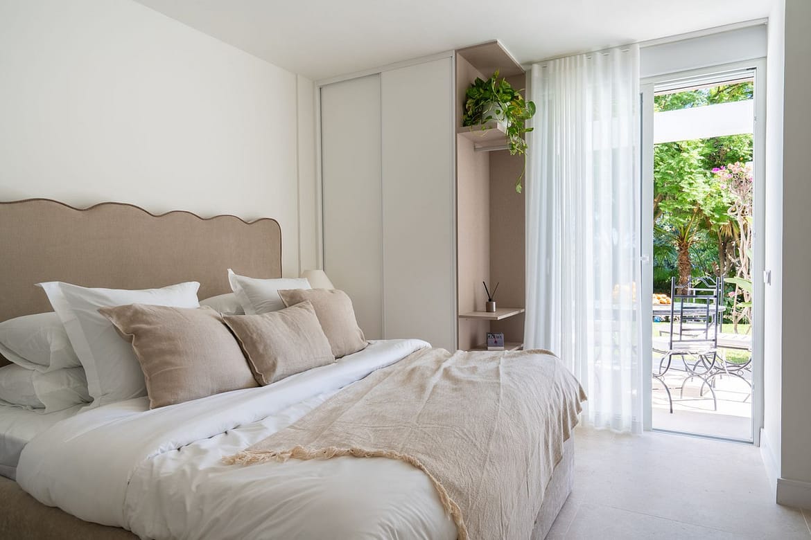 Located in La Quinta, Marbella, this recently renovated ground-floor apartment showcases custom-made furniture, bespoke sinks, and unique marble finishes throughout. It offers 3 bedrooms, 2 bathrooms, and a bright living area opening onto a private terrace surrounded by greenery.