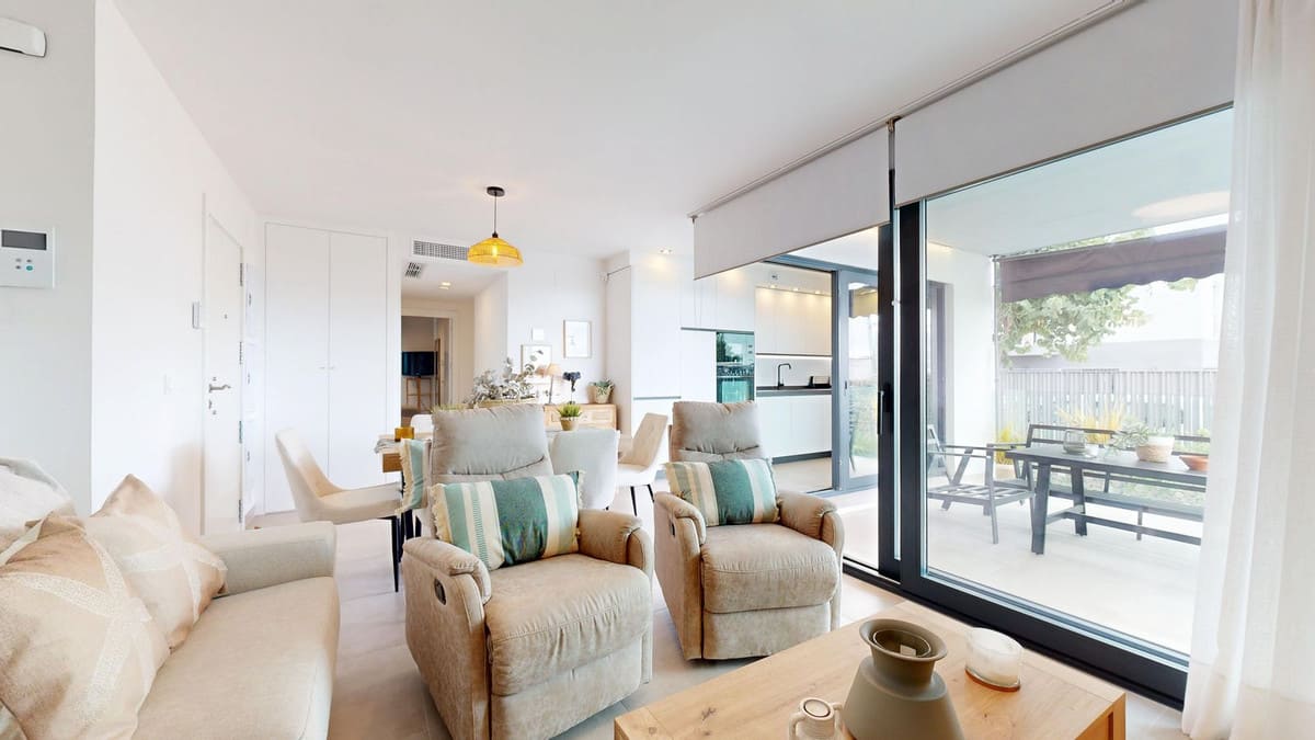 The apartment offers 3 spacious bedrooms, 2 full bathrooms (one of them en-suite), ready to move in. The bright and comfortable living-dining room opens onto a private terrace, perfect for enjoying the sunshine all year round.