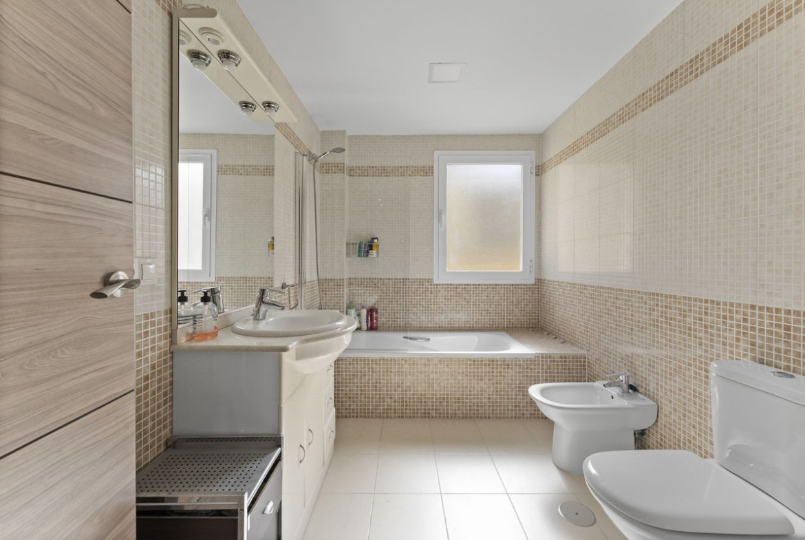 The apartment boasts three generously sized bedrooms, one of which is a bright en-suite that leads directly onto the terrace — perfect for enjoying your morning coffee with a view.