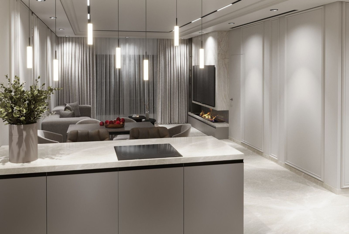 Inside, the apartment showcases a newly designed open-plan kitchen and living area, meticulously crafted with meticulous attention to detail. Expansive windows afford uninterrupted vistas of the azure Mediterranean Sea. The interior is further enhanced by luxurious amenities, added conveniences include underground parking and a storage unit.