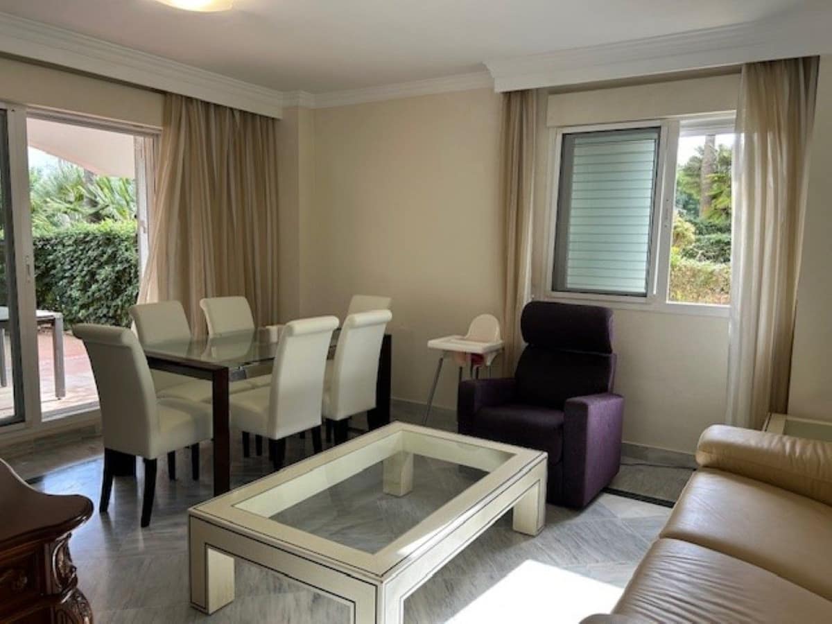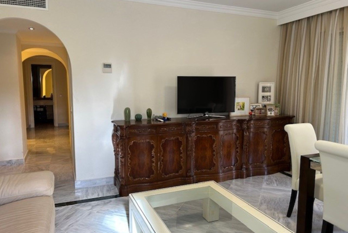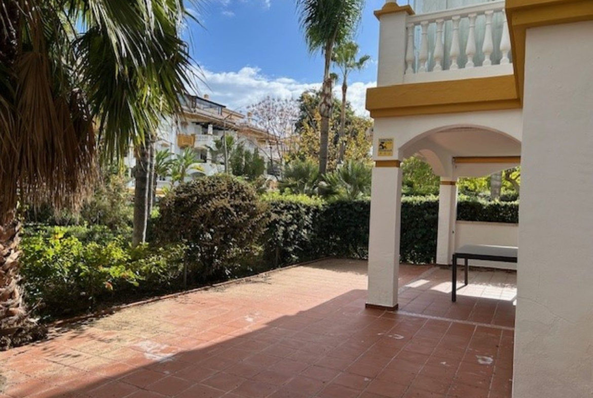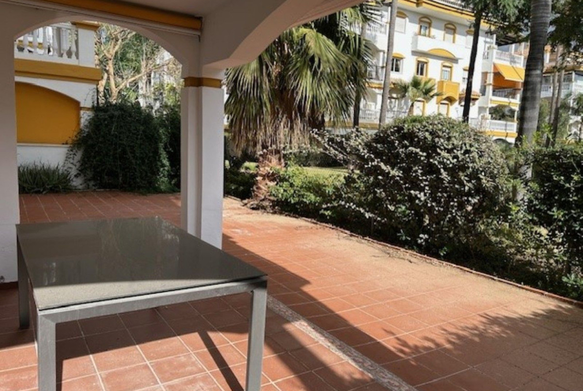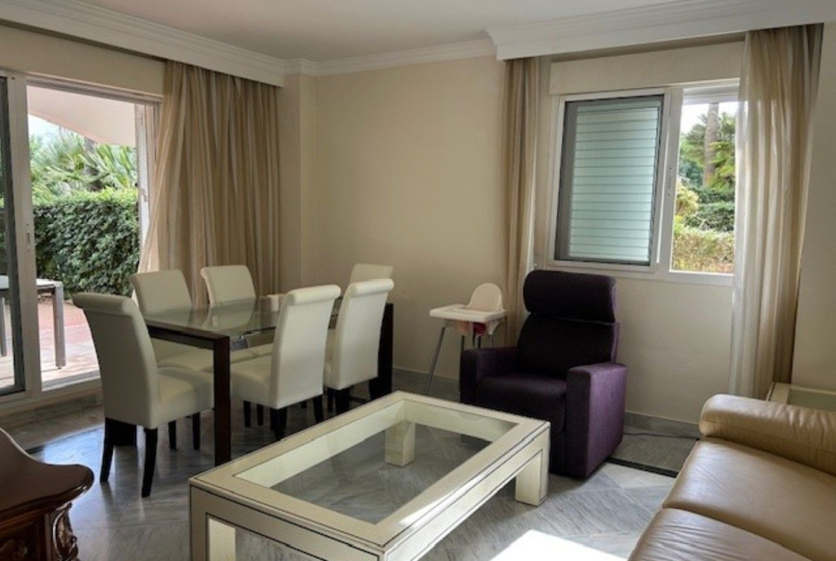 Spacious corner ground floor apartment of 3 bedrooms, 2 bathrooms, big lounge and dining area with exit to a West facing terrace of 68 m2, fully fitted kitchen. Has cold and hot A/C, metallic shutters in all windows and underground parking for 1 car