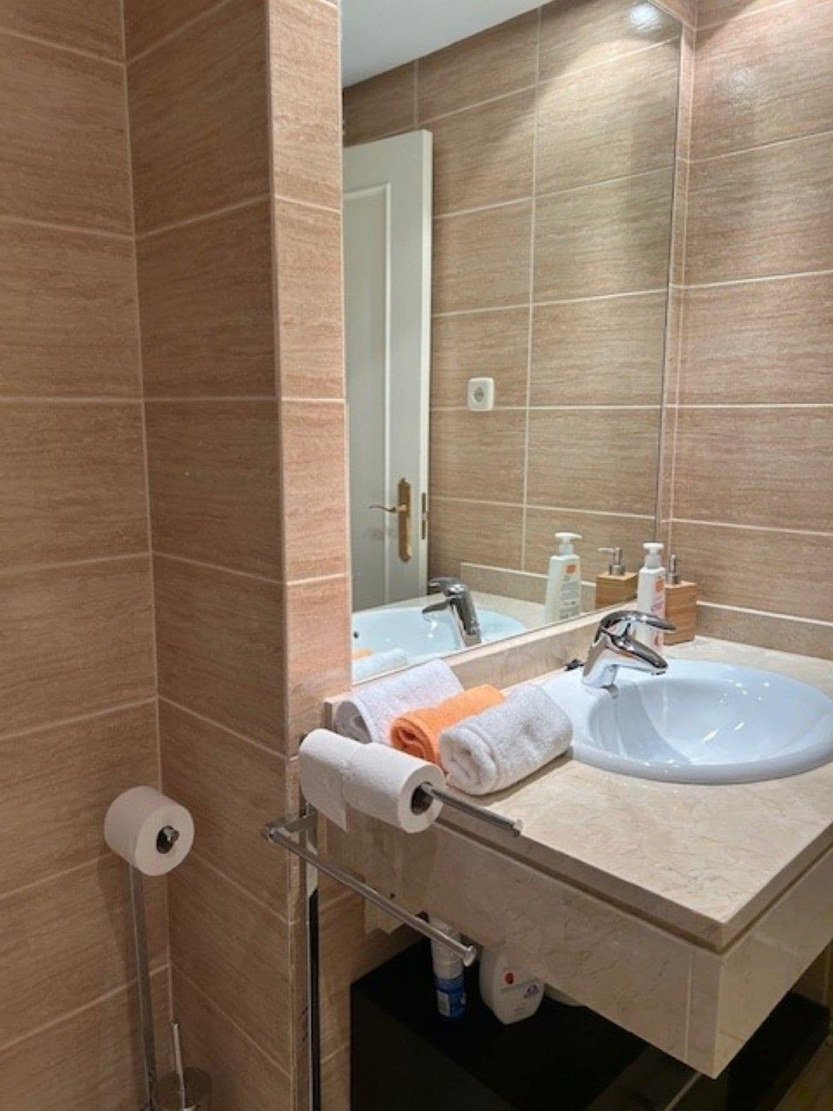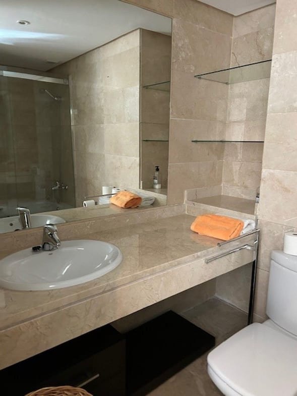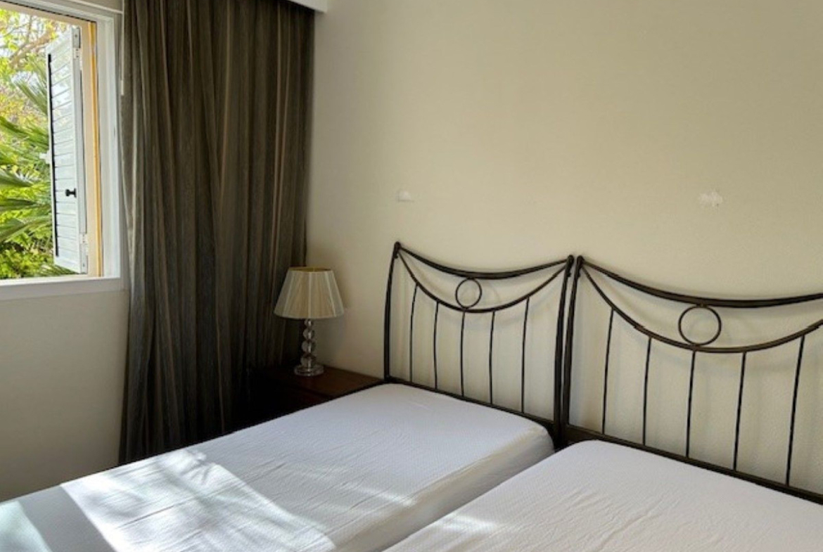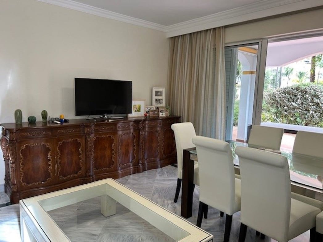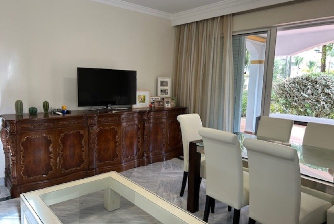 Spacious corner ground floor apartment of 3 bedrooms, 2 bathrooms, big lounge and dining area with exit to a West facing terrace of 68 m2, fully fitted kitchen. Has cold and hot A/C, metallic shutters in all windows and underground parking for 1 car