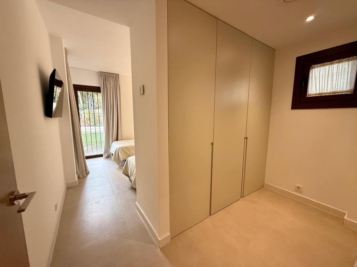 This large 3 bedroom completelly renovated ground floor apartment is located within the Las Cascadas complex in the heart of the Golf Valley, facing south west and with direct access to the beautiful communal gardens and pool.