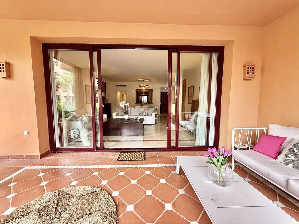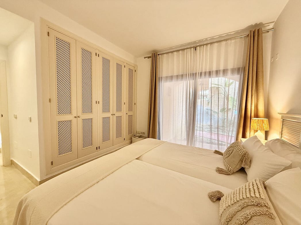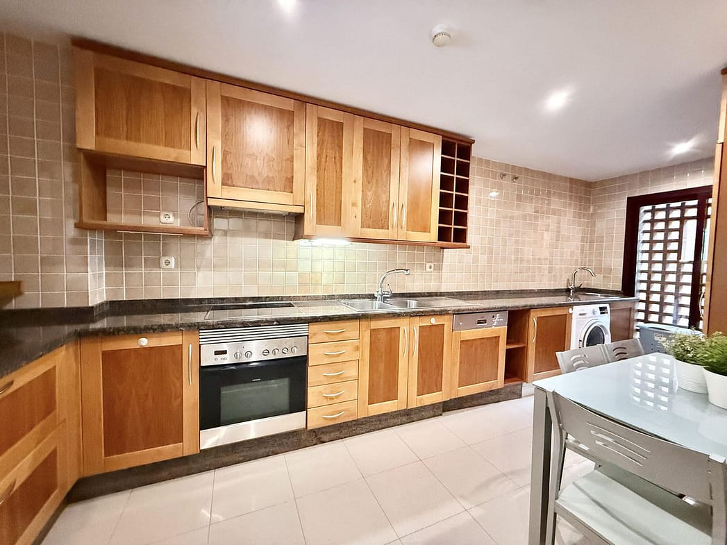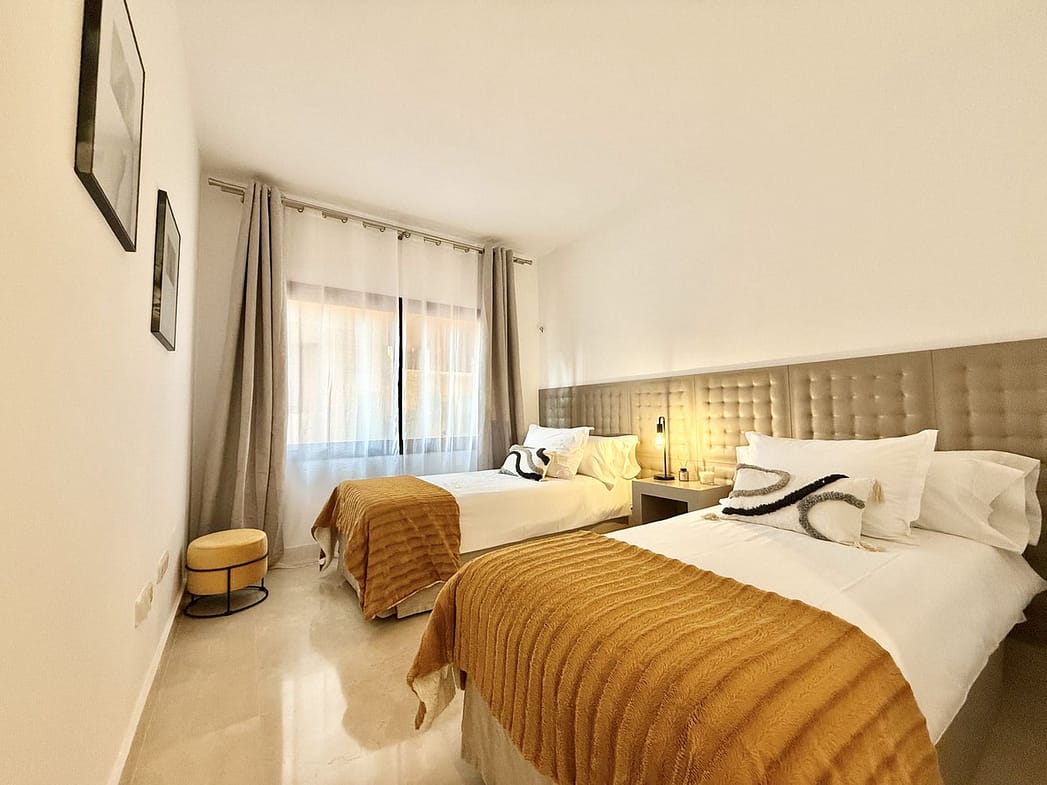 With 3 bedrooms and 2 bathrooms, the flat stands out for its impeccable design and brightness. Its spacious private terrace is perfect for al fresco dining all year round, as well as providing direct access to the swimming pool from the comfort of your home. The kitchen is fully equipped with modern appliances, while the bathrooms have the added convenience of underfloor heating.