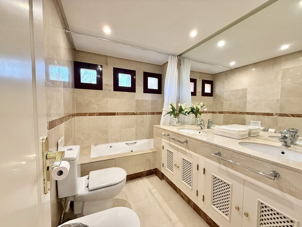 The centre of San Pedro is just a 5-10 minute walk away, offering a variety of services and shops. In addition, the area boasts a number of outstanding facilities such as the Nueva Alcántara Club, which has paddle tennis courts, dining room and gymnasium, as well as the international bilingual Laude International School, renowned for its education from kindergarten to A Levels. Puerto Banús is just a 5 minute drive or a short walk along the beach.
