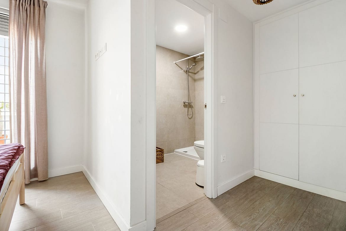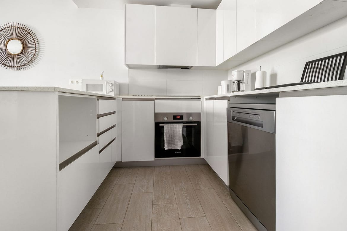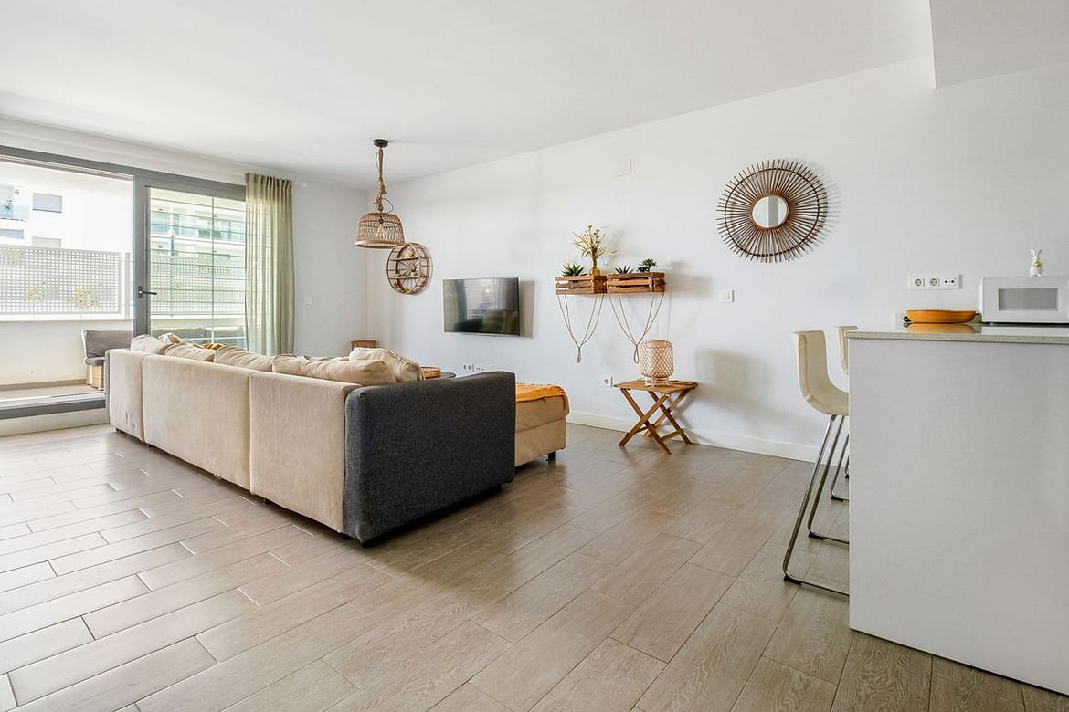 From the living room, you step directly onto the generous 31 m² terrace, which also connects to one of the bedrooms. The terrace offers excellent privacy and plenty of space for both lounging and dining – perfect for lazy days in the sun. From here, you can even catch a glimpse of the sea.