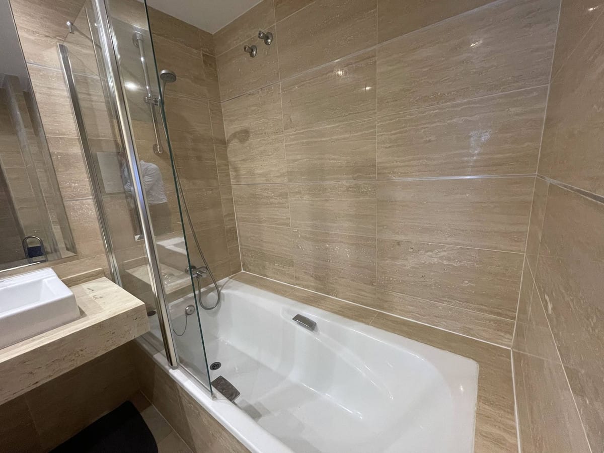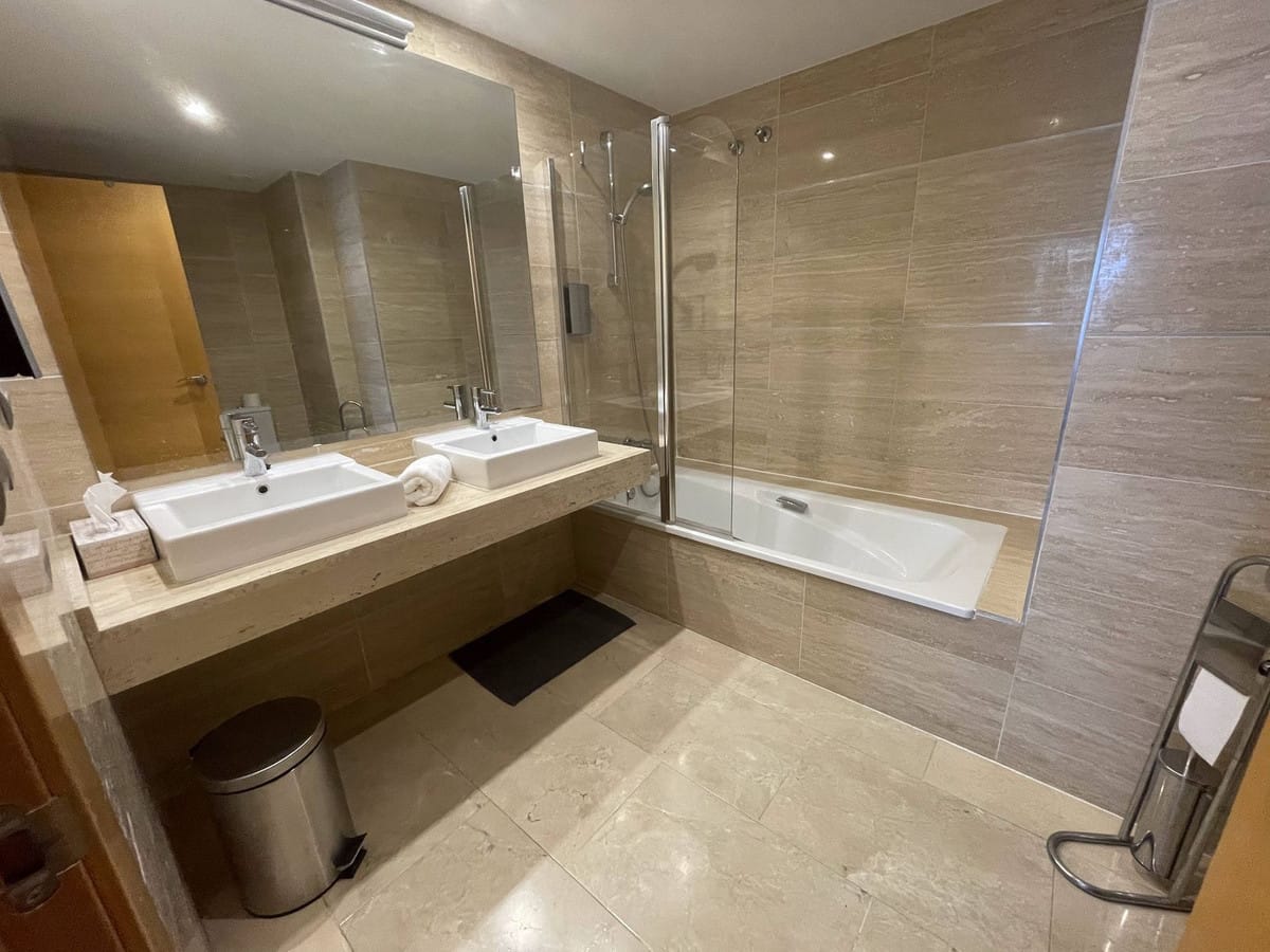 To the left of the entrance hall is a twin bedroom with built-in wardrobes and a spacious bathroom. Through the lounge area the master bedroom is accessed with a super-king sized bed, a dressing area with fitted wardrobes, and a bathroom with twin sink areas and a bath/shower.