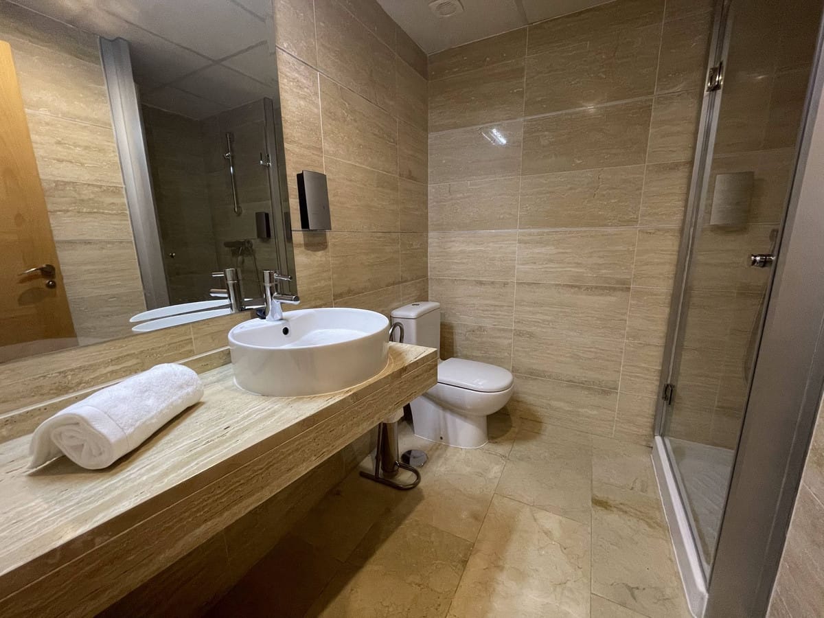 The first floor apartment is accessed by lift or stairs, and upon entering the light and open lounge and dining area, guests are greeted with open sea-views and double doors to an excellent south-east-facing terrace. A well equipped kitchen with bar counter opens to the living area, and has all the appliances you could need, right down to a Nespresso coffee machine!