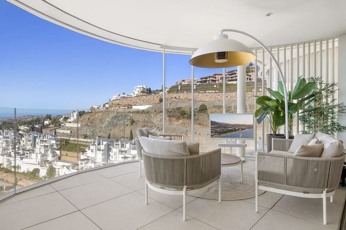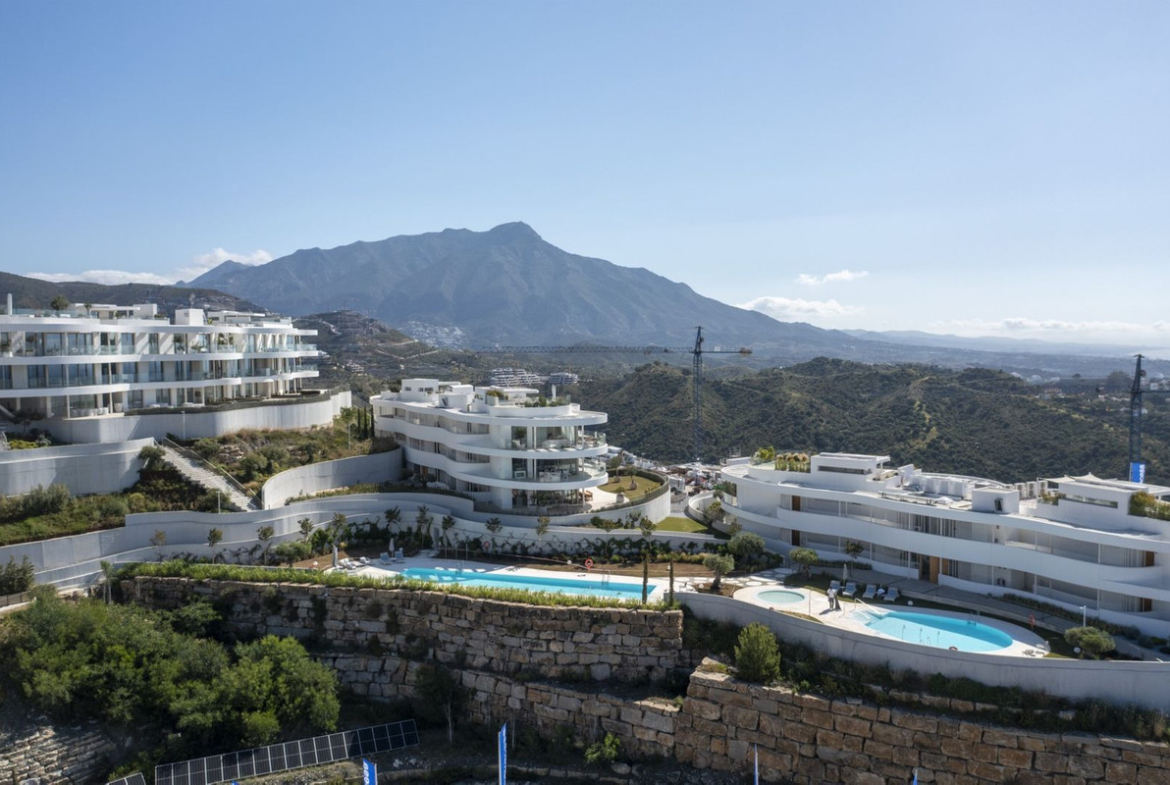 The project enjoys breathtaking views from the large terraces over the Mediterranean Sea to Gibraltar and the coast of Africa. From its elevated position just above Marbella's characteristic Golf Valley, the golf courses of Los Naranjos, La Quinta, Las Brisas and Aloha lie at your feet.