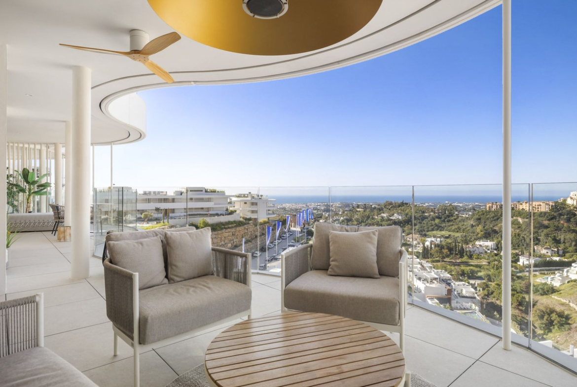 This beautiful 3-bedroom, 2-bathroom ground floor apartment is located in The View Marbella, an exclusive residential complex in Benahavís, offering breathtaking panoramic sea views. The south-facing property combines modern elegance with functional design to create an exceptional living experience.