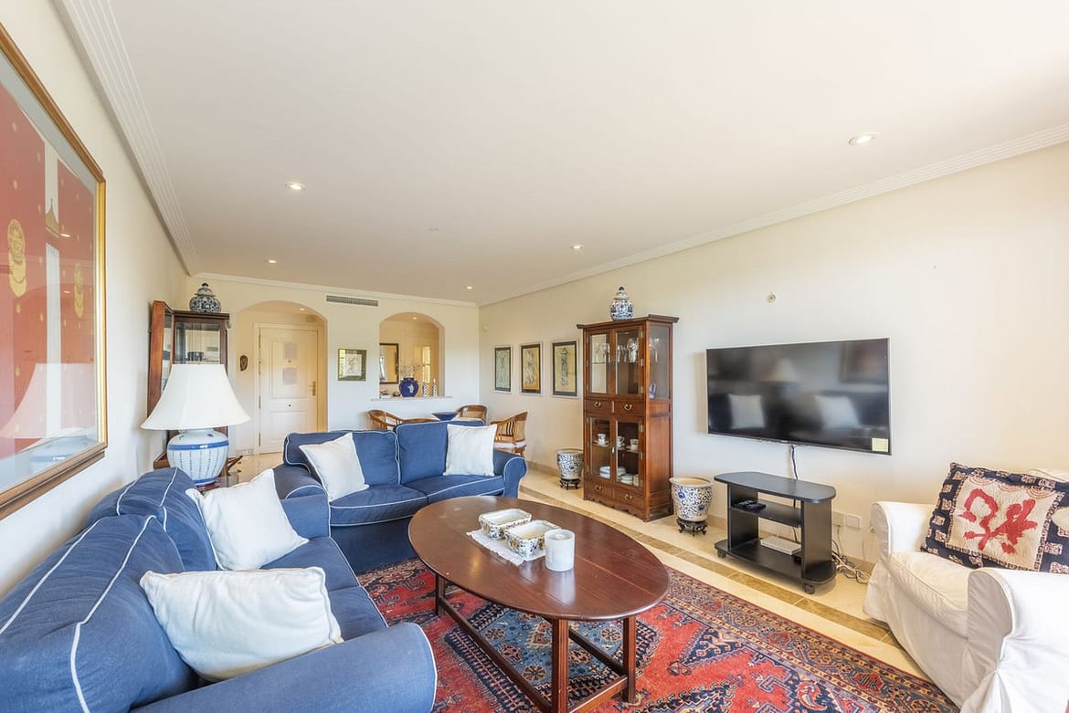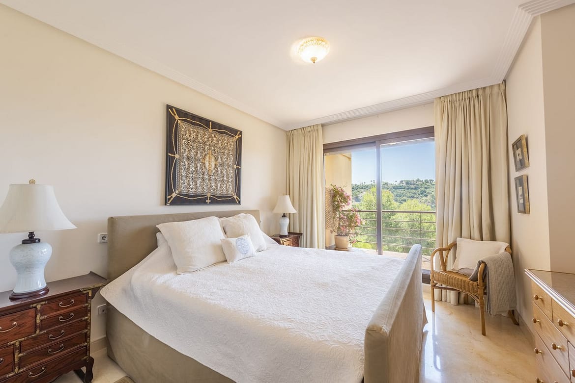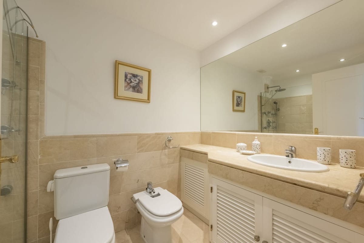 The apartment features 3 large bedrooms with fitted wardrobes and 2 bathrooms. The main bedroom with a double bed and en-suite bathroom has direct access to the terrace. The second bedroom with a double bed has its own small cozy terrace. The third bedroom features another double bed.