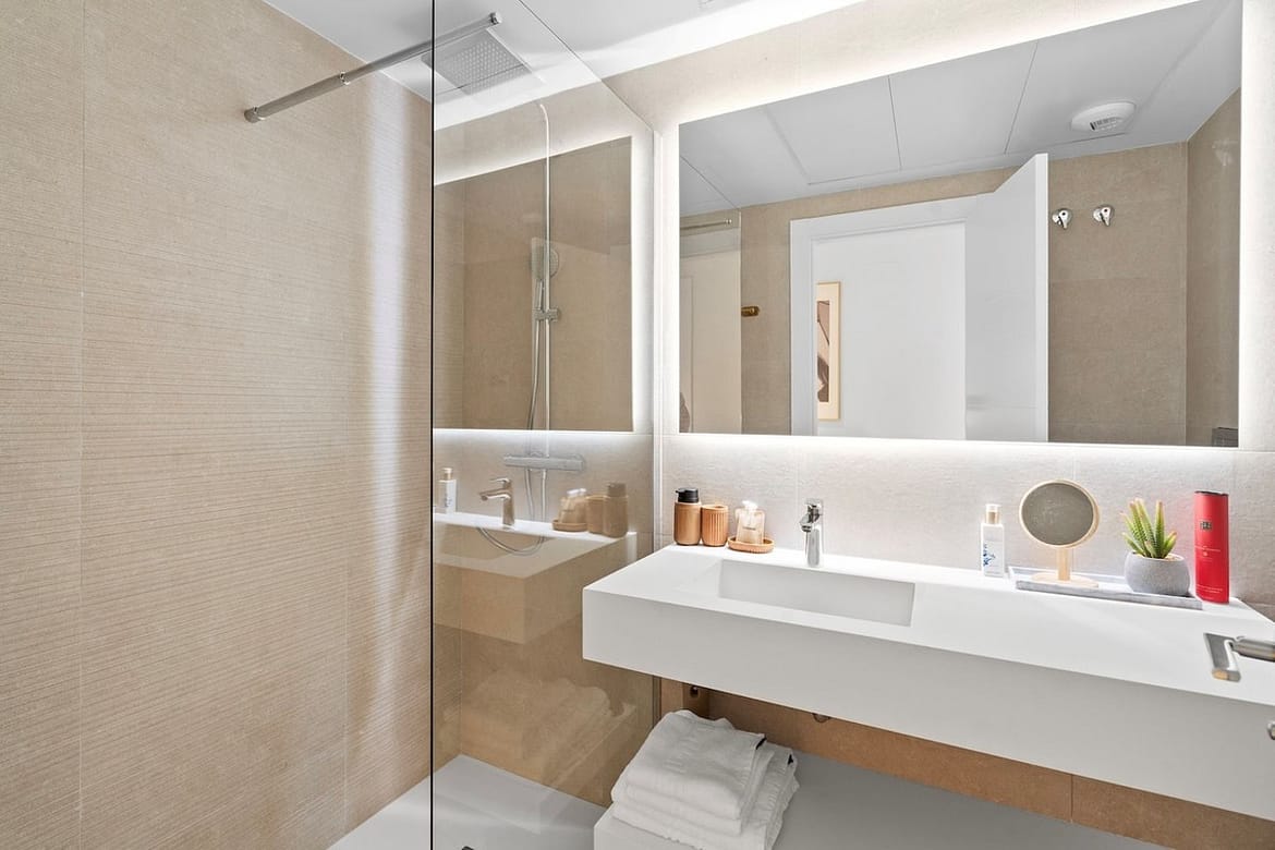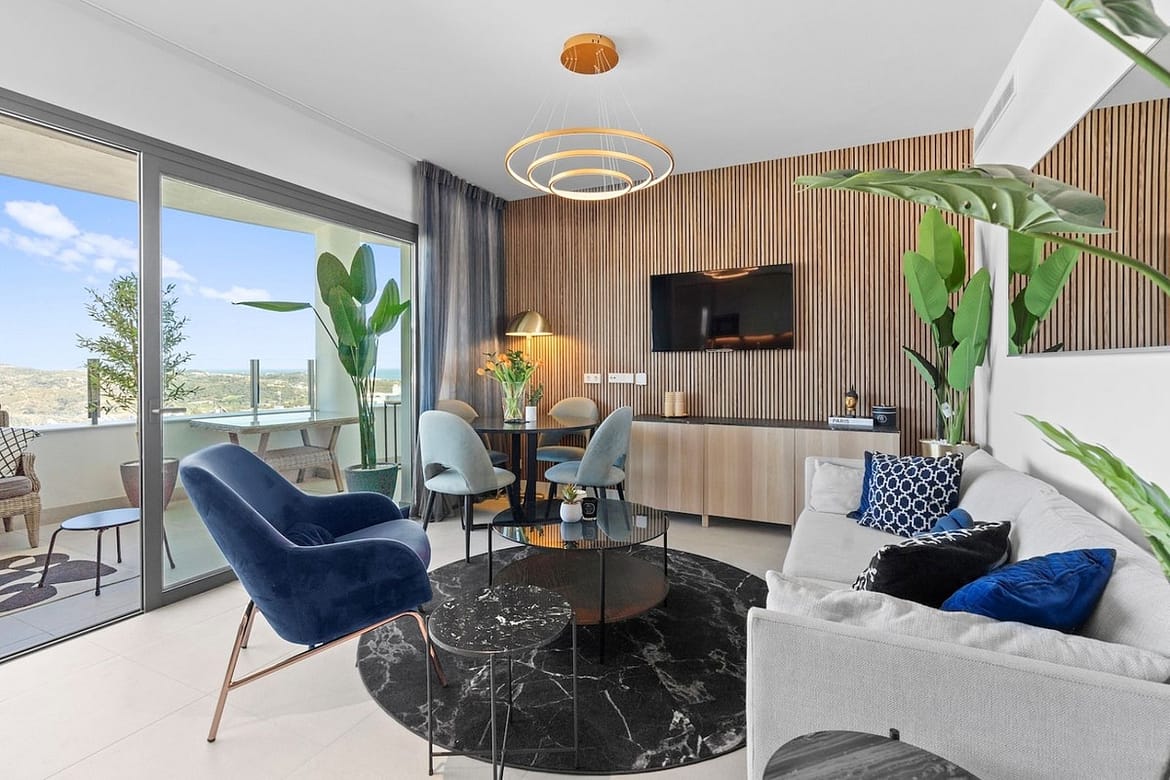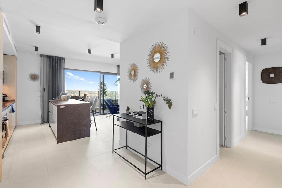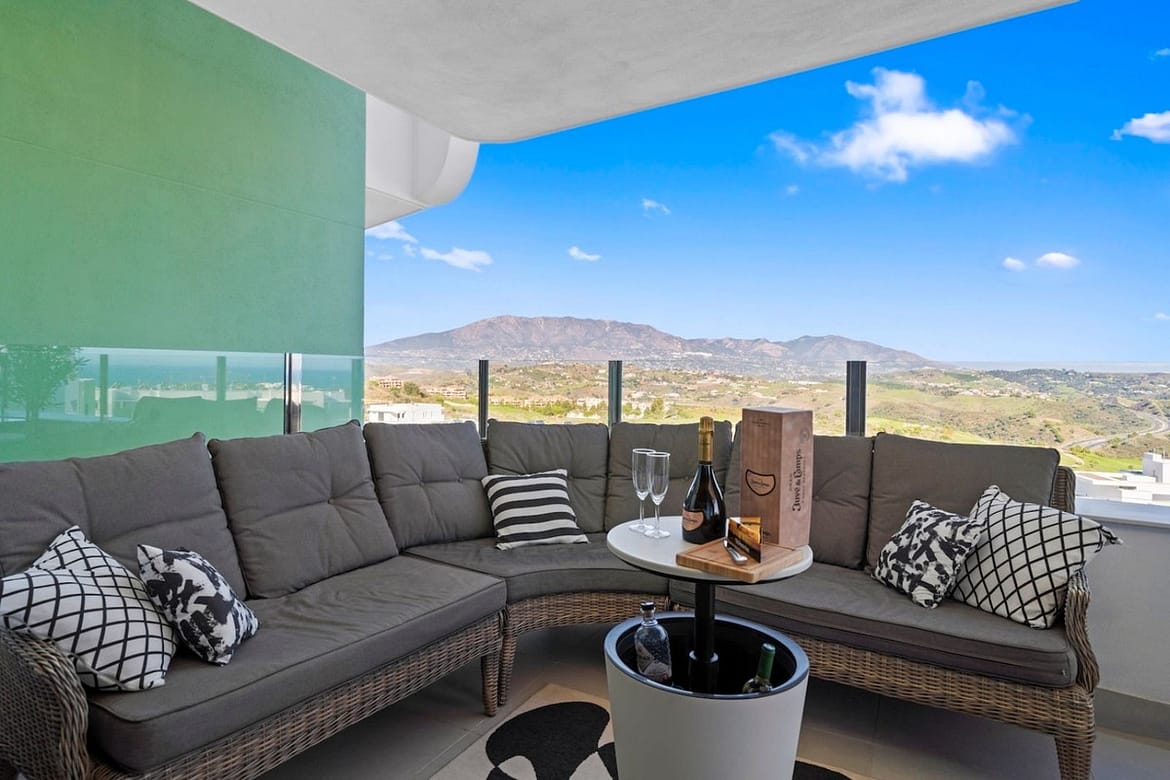 Stunning 3-Bedroom Apartment with Sea and Golf Views in Ipanema, Calanova Golf – Mijas Discover luxury living in this beautifully designed 3-bedroom, 2-bathroom apartment located in the sought-after Ipanema development at Calanova Golf, Mijas Costa. This modern home offers panoramic views of the Mediterranean Sea and the lush fairways of Calanova Golf Course, providing the perfect blend of tranquility and elegance. The apartment features a spacious open-plan living and dining area that opens onto a large terrace—ideal for enjoying al fresco dining while taking in the spectacular scenery. The sleek, fully equipped kitchen with cooking island includes high-end appliances and quality finishes throughout. The master bedroom boasts an en-suite bathroom and direct access to the terrace with golf and sea views. Two additional bedrooms and a second bathroom make this home perfect for families. Key features include: – South-West-facing orientation with stunning natural light – Large private terrace with sea and golf views – Air conditioning (hot and cold) – Access to two designer swimming pools, a gym, and beautifully landscaped gardens – Gated community with high security standards Located just eight minutes drive from the beach, La Cala de Mijas, and all local amenities, this apartment offers an exceptional lifestyle in one of the Costa del Sol’s most up-and-coming areas.