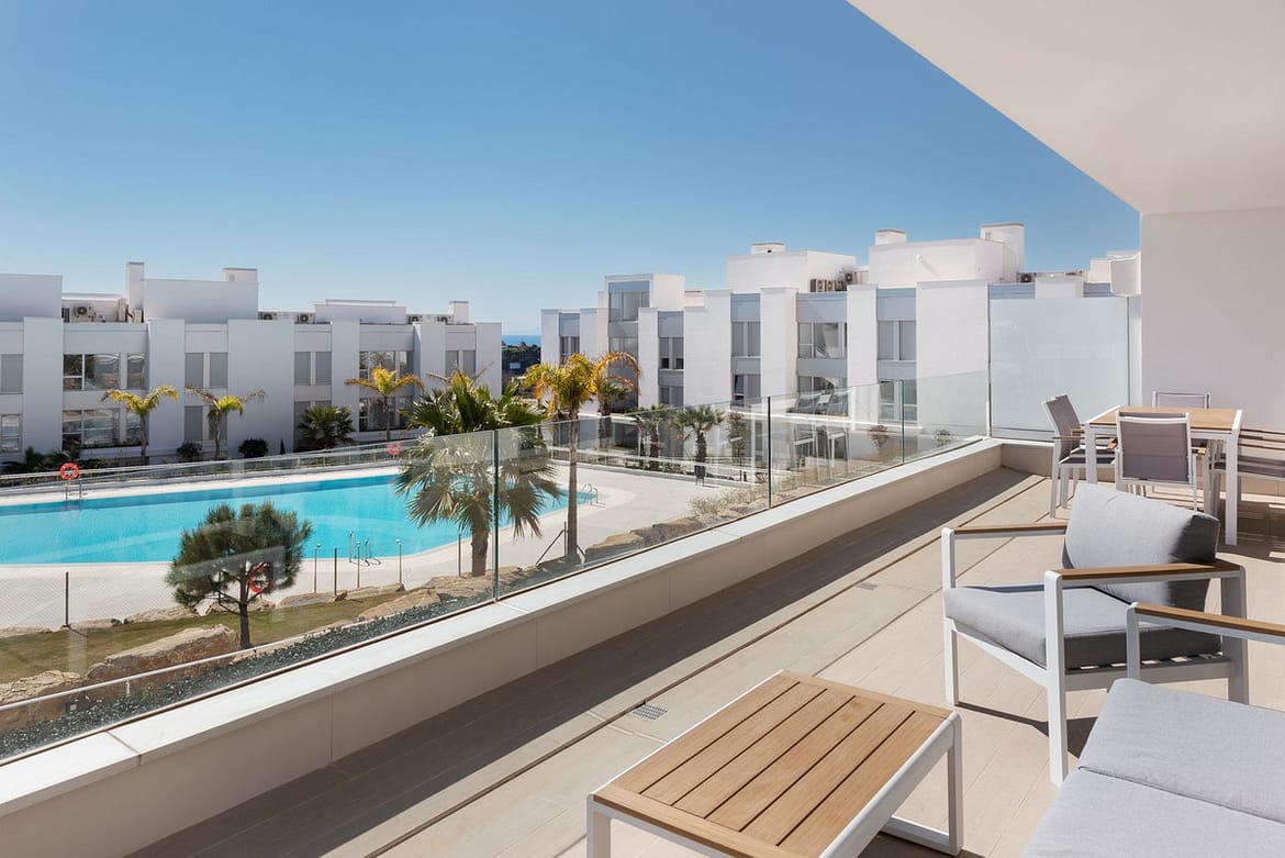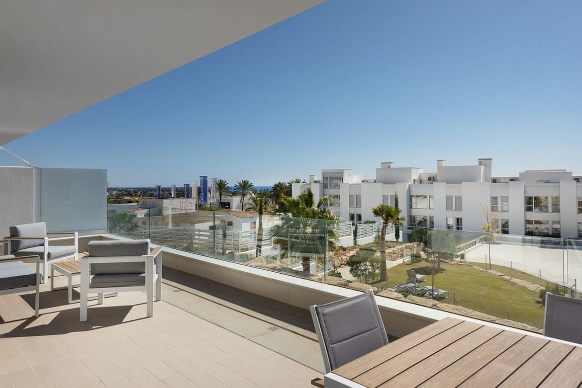 Experience the allure of this captivating three-bedroom, two and a half bathroom, middle-floor apartment in a newly constructed building. This apartment boasts a sprawling South-facing terrace that provides an enchanting view of the pool, ensuring every moment is soaked in sunshine.