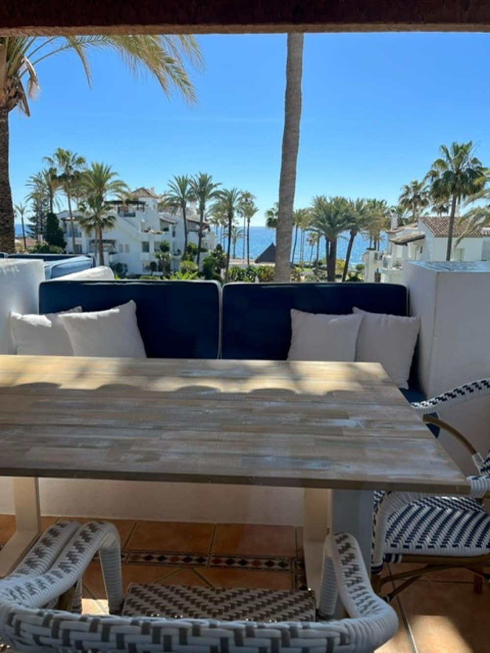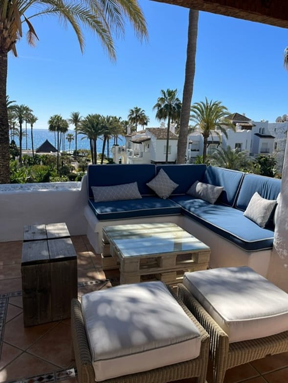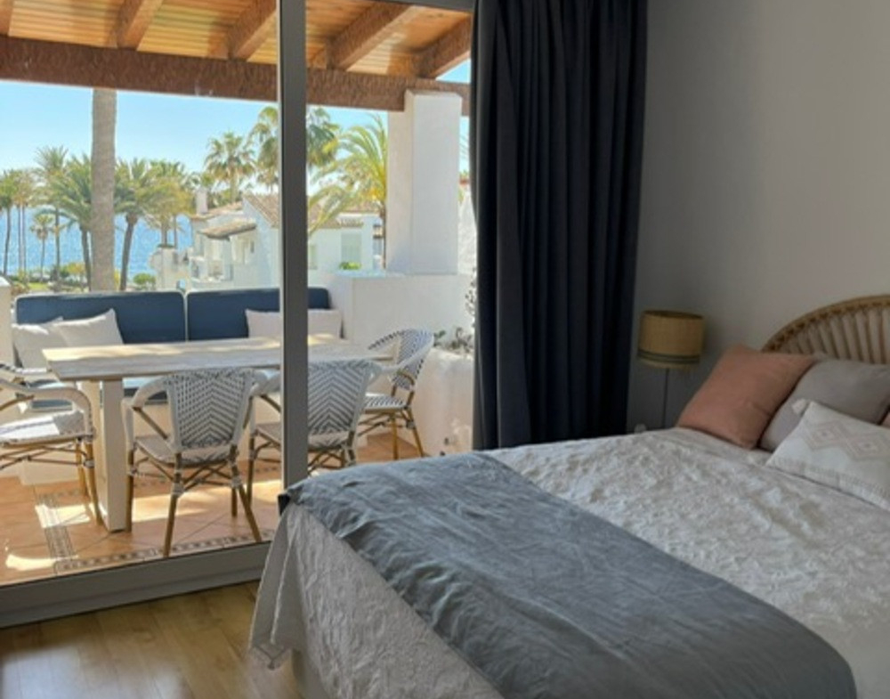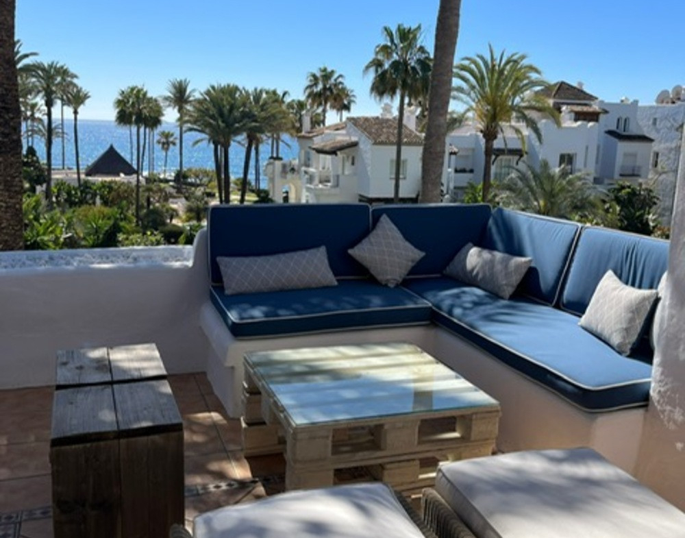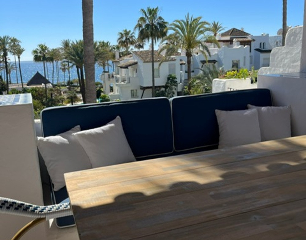 Featuring 3 bedrooms and 2 bathrooms, a fully fitted kitchen a cosy living room and beautiful modern furniture throughout making this place cosy and fresh looking. Upstairs you will find the solarium with an outdoor dining area and bar area, perfect for entertaining guests during those long summer evenings. Both terraces offer fantastic sea views.