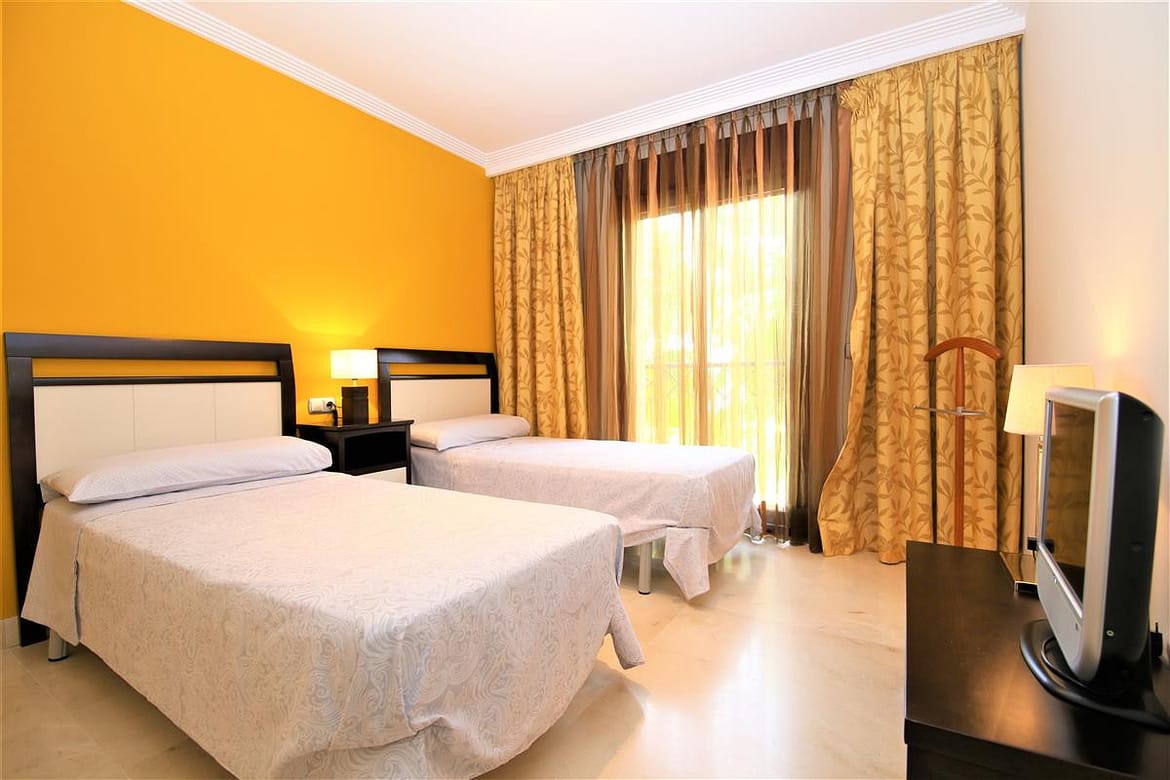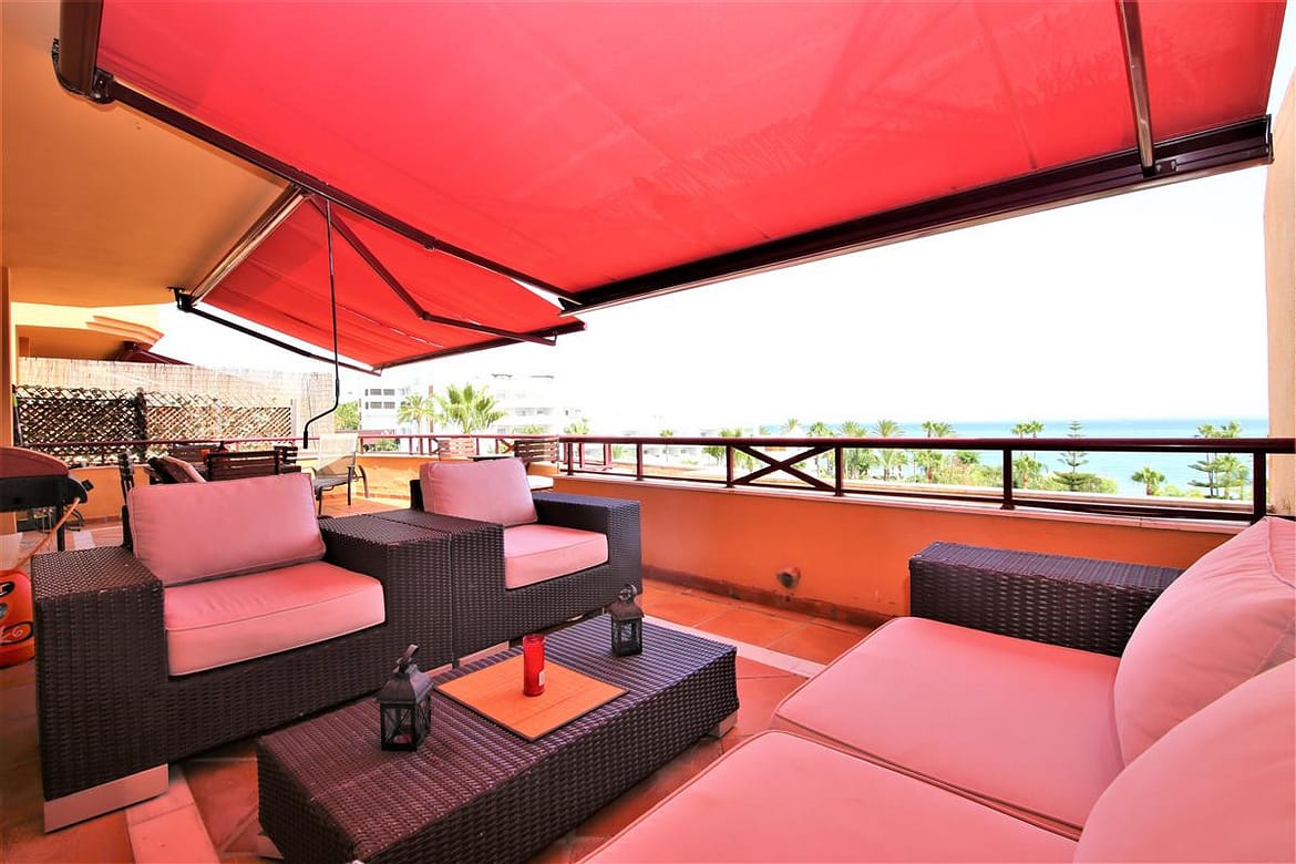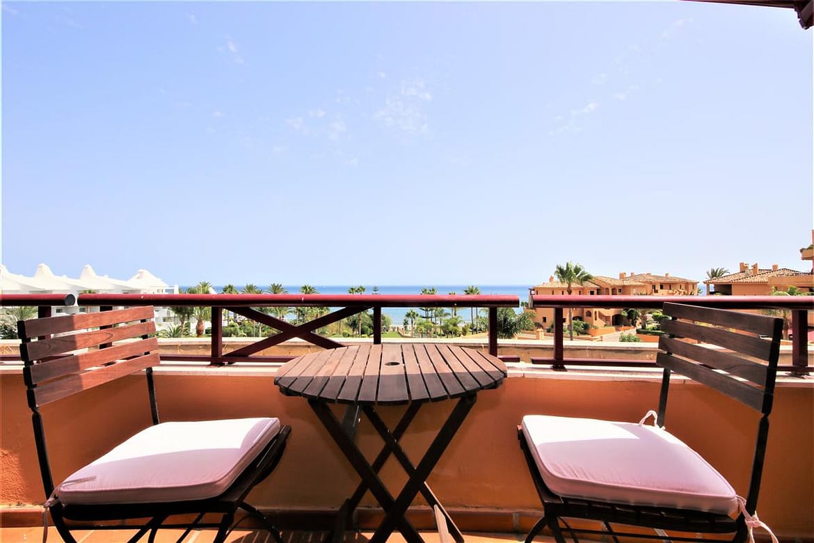 An amazing apartment perfect for families wanting to stay right next to the beach and not so far away from Estepona port. It has three bedrooms, two bathrooms, living room with dining area, a fully fitted kitchen, cloakroom and a south facing balcony with sea views. A very spacious and wonderfully decorated property with high speed internet and a central air-con system in all bedrooms and living room. The master bedroom has a super king sized bed, en-suite bathroom and direct access to the large balcony. The second bedroom is a twin and the third bedroom is also a twin. The large balcony is covered with a dining table for six, a comfortable seating area and two sunbeds to relax on and enjoy the wonderful views of the sea. This property provides a high speed internet connection with an international TV streaming package just for the living room's 45" flat screen. The other flat screen located in the master bedroom only provides Spanish channels. A fully fitted kitchen is also available for your use. The property provides a private parking space in the underground garage and there is a large fenced community swimming pool for adults and a separate children's pool. All in all, a lovely apartment in a very popular complex.