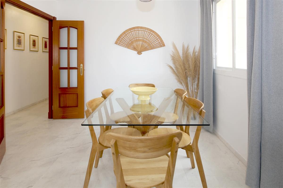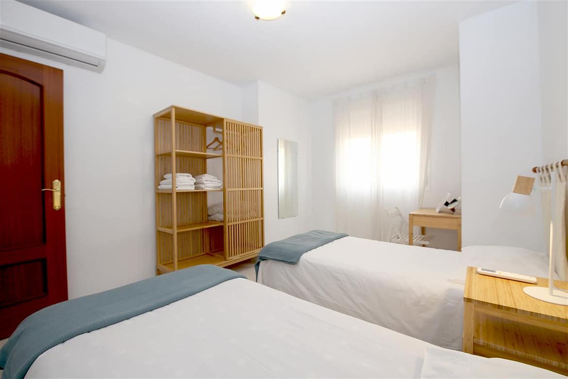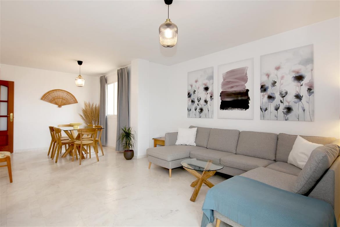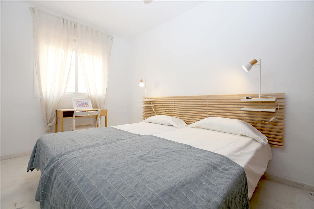 A refurbished and spacious holiday apartment that is perfect for families looking to relax near the beach or pool, close to the port and town centre. This property has three bedrooms, two bathrooms and a north-east facing balcony offering comfortable accommodation for up to six guests. The property includes a high speed fibre optic Wifi connection and independent air conditioning units in all bedrooms and living room. The bright and airy lounge is equipped with a lovely dining area plus a large sofa for six. The lounge area is equipped with a 55 inch flat-screen TV that offers plenty of international TV channels including Sky. The lounge opens onto the north-east facing balcony with a small dining set for six with stunning mountain and park views. The kitchen is fully equipped with all available appliances that you may need for your holiday along with a small laundry area with a washing machine. The en-suite master bedroom is equipped with a king-size bed (150×190 CM), 43 inch flat-screen with international channels with Sky and the bathroom includes a bath with overhead shower, WC and sink. The second and third bedrooms are twins and the beds may be joined up together to form a super king-size bed (180×180 CM) in each bedroom. There is also a family bathroom with a bath with overhead shower, WC and sink. The property includes a private underground parking space in the residential garage and the urbanisation provides a small community swimming pool that is open all year round (please enquire to confirm availability). All in all, a lovely property for a perfect family holiday close to Estepona port.