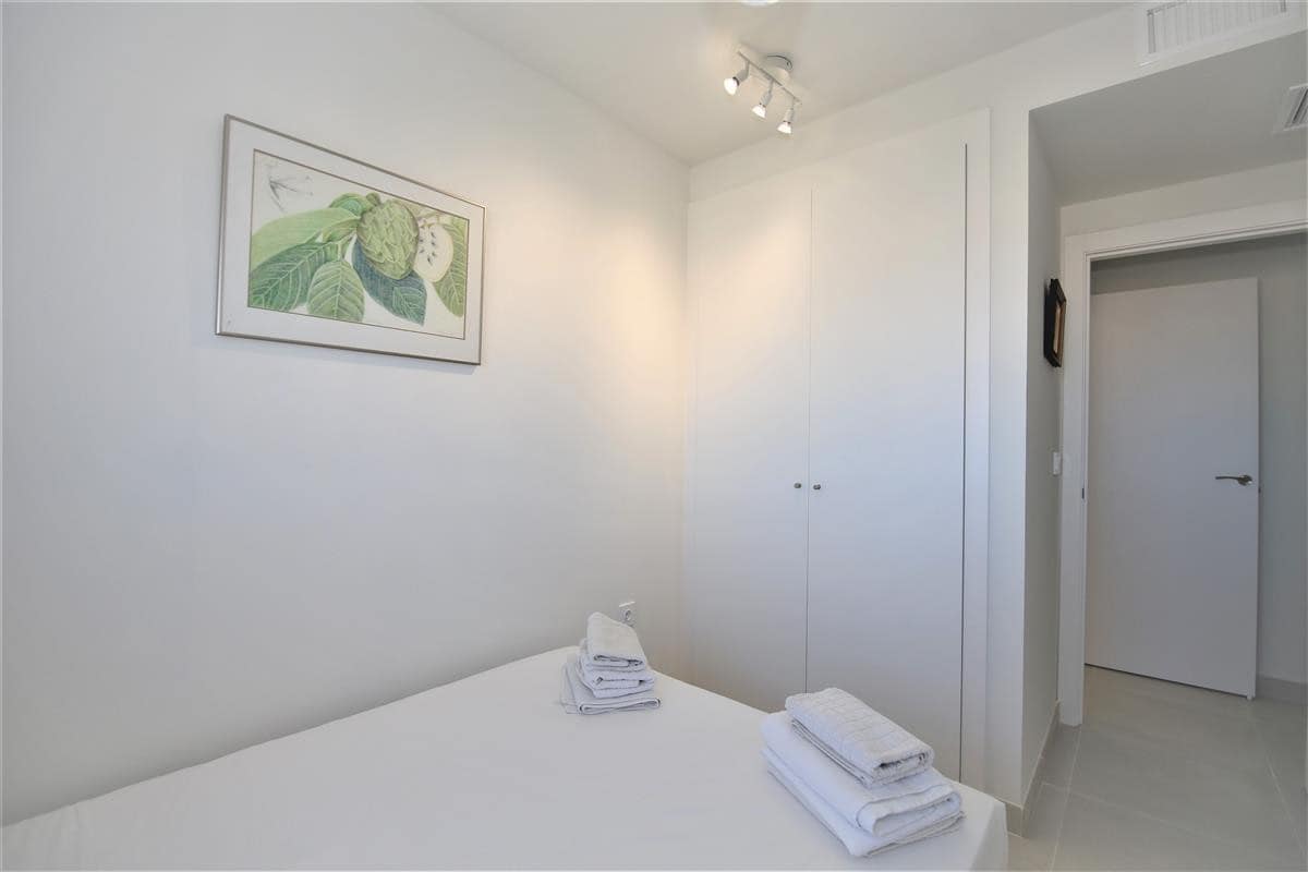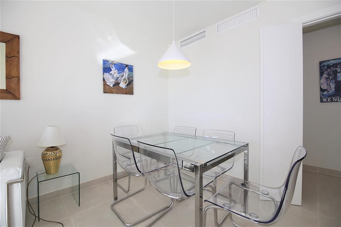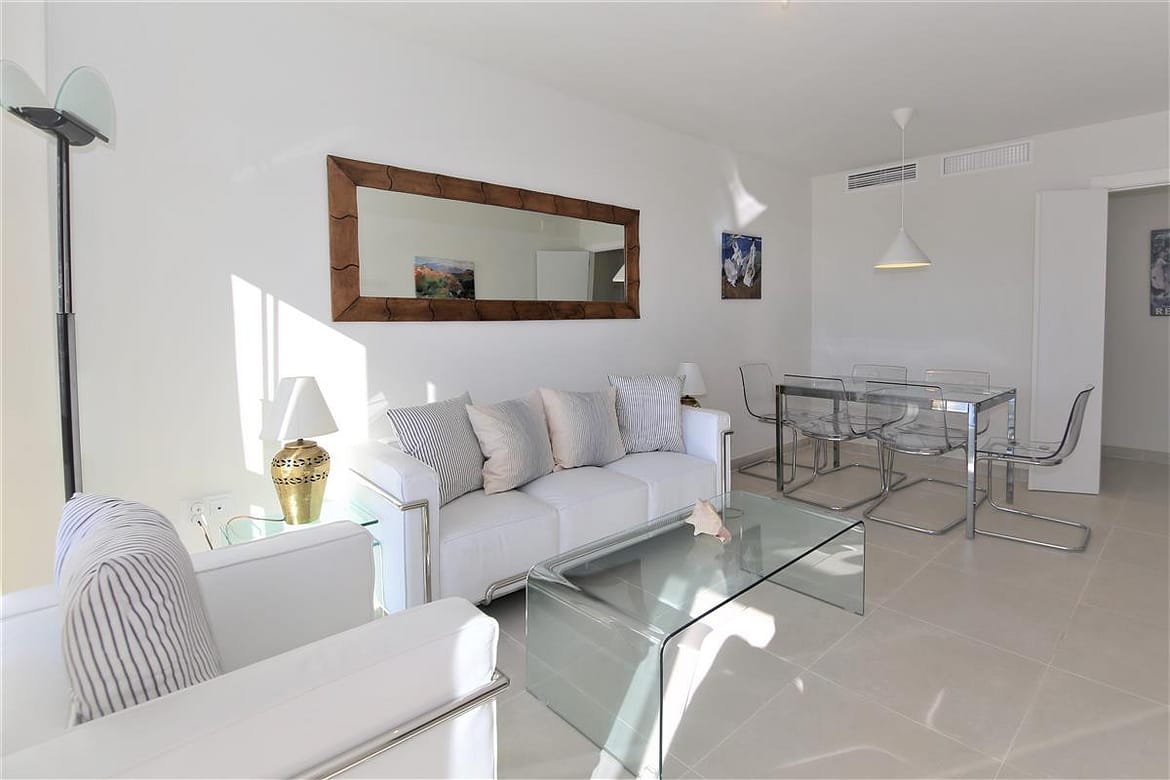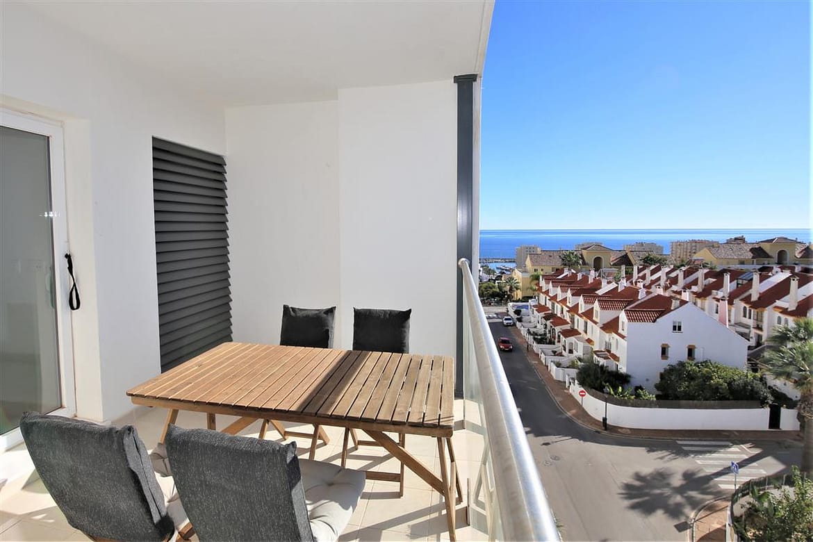 This modern apartment is only a short walk to Estepona marina. It offers three bedrooms and two bathrooms and a spacious balcony with lovely views for alfresco dining, perfect for families due to the location and its amenities. In the master bedroom, with its king size bed (160x200cm) and plenty of wardrobe space, you'll find the en-suite bathroom with its modern feel and white suite comprising of bath with hand-held shower, hand basin, WC and bidet. The second bedroom has two single beds (90x190cm) and the third bedroom has one single bed that uses the family shower room with shower cubicle, hand basin and WC. The kitchen has all mod cons, including a dishwasher, three ring cooking hob, oven and microwave. There is also a separate laundry area with washing machine. On the south-west facing balcony you’ll find a dining set for four guests surrounded by glass panels to make it feel even more spacious. The lounge comprises of a dining table with six chairs, a comfortable three seater sofa, two extra sofa chairs and a flat screen television with its international multi-channel system, offering British, French, Dutch, German and Scandinavian languages including Sky. The apartment is fully air-conditioned with a new and efficient central system and has a high-speed fibre optic internet connection for your use. Within the urbanisation of Puerto Blanco, you'll find the large community swimming pool only a short walk from the property (around 250m). A car is not necessary but there is a private parking space in the secure underground car park if needed. All in all, a great family holiday apartment.