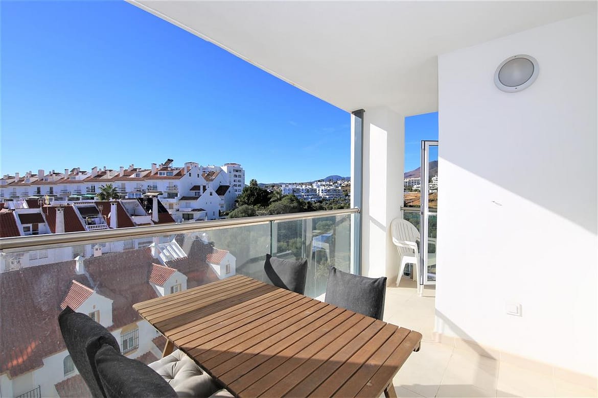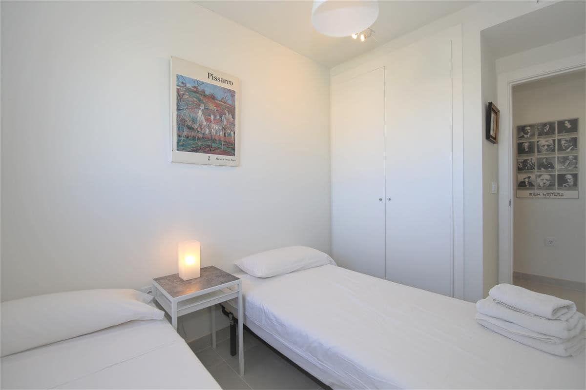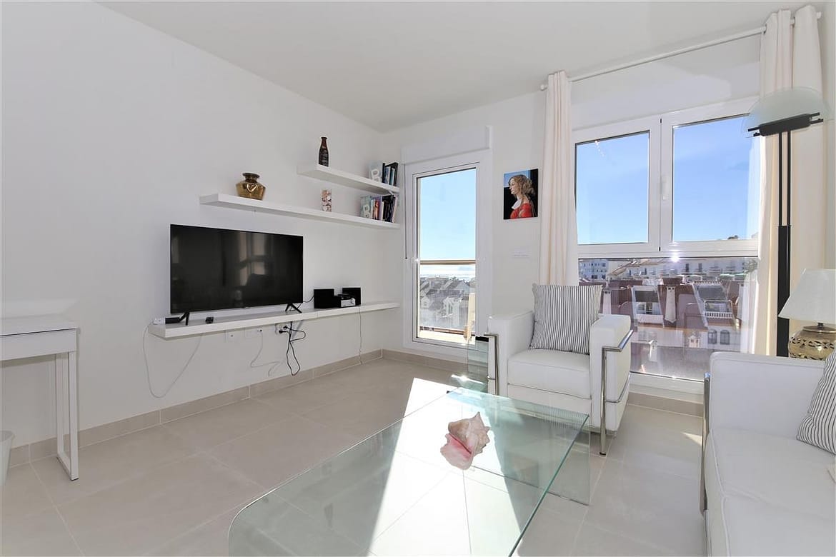 This modern apartment is only a short walk to Estepona marina. It offers three bedrooms and two bathrooms and a spacious balcony with lovely views for alfresco dining, perfect for families due to the location and its amenities. In the master bedroom, with its king size bed (160x200cm) and plenty of wardrobe space, you'll find the en-suite bathroom with its modern feel and white suite comprising of bath with hand-held shower, hand basin, WC and bidet. The second bedroom has two single beds (90x190cm) and the third bedroom has one single bed that uses the family shower room with shower cubicle, hand basin and WC. The kitchen has all mod cons, including a dishwasher, three ring cooking hob, oven and microwave. There is also a separate laundry area with washing machine. On the south-west facing balcony you’ll find a dining set for four guests surrounded by glass panels to make it feel even more spacious. The lounge comprises of a dining table with six chairs, a comfortable three seater sofa, two extra sofa chairs and a flat screen television with its international multi-channel system, offering British, French, Dutch, German and Scandinavian languages including Sky. The apartment is fully air-conditioned with a new and efficient central system and has a high-speed fibre optic internet connection for your use. Within the urbanisation of Puerto Blanco, you'll find the large community swimming pool only a short walk from the property (around 250m). A car is not necessary but there is a private parking space in the secure underground car park if needed. All in all, a great family holiday apartment.