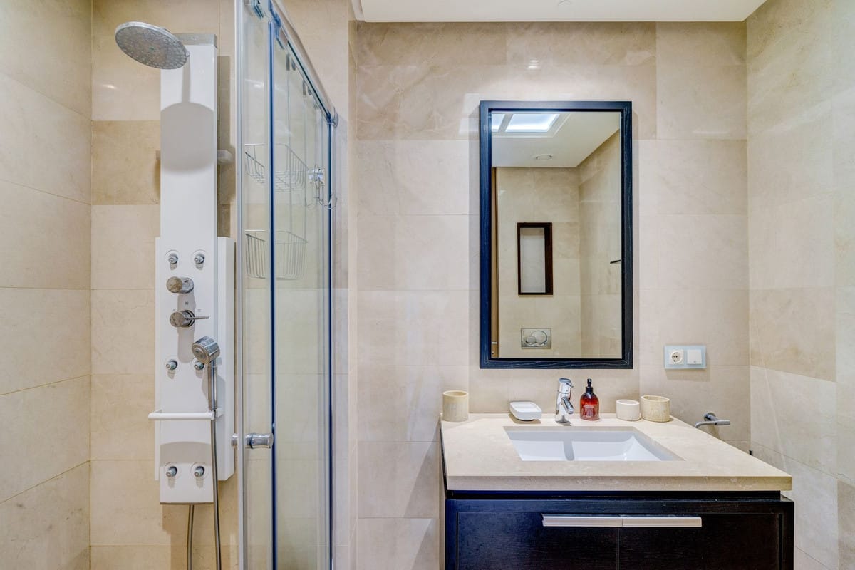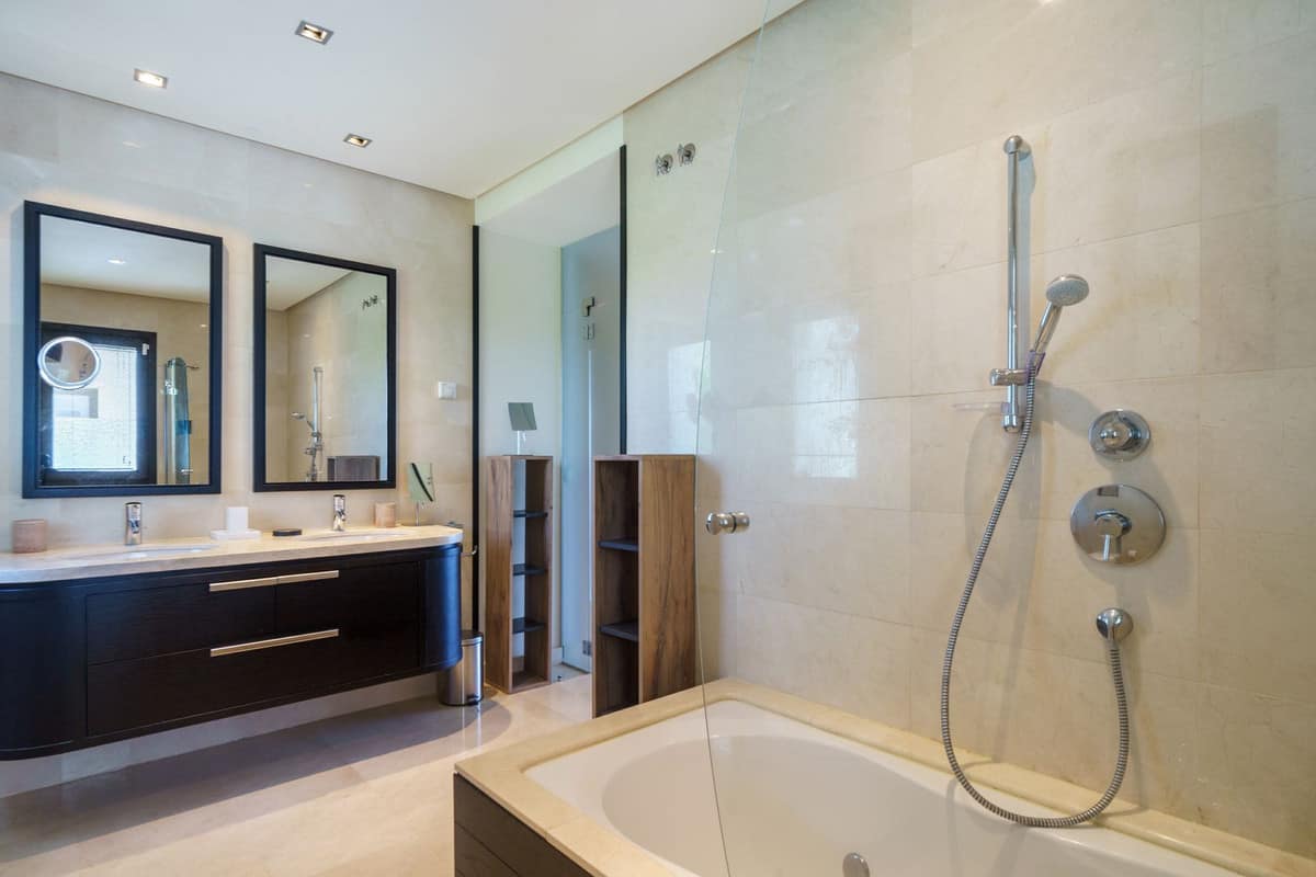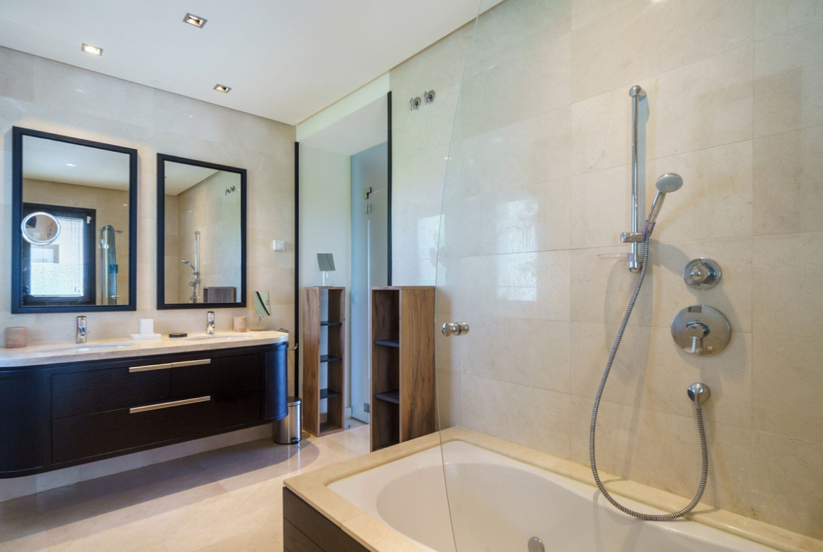 Modern Bathrooms: Two elegant bathrooms equipped with contemporary fixtures.