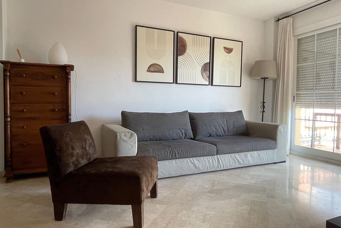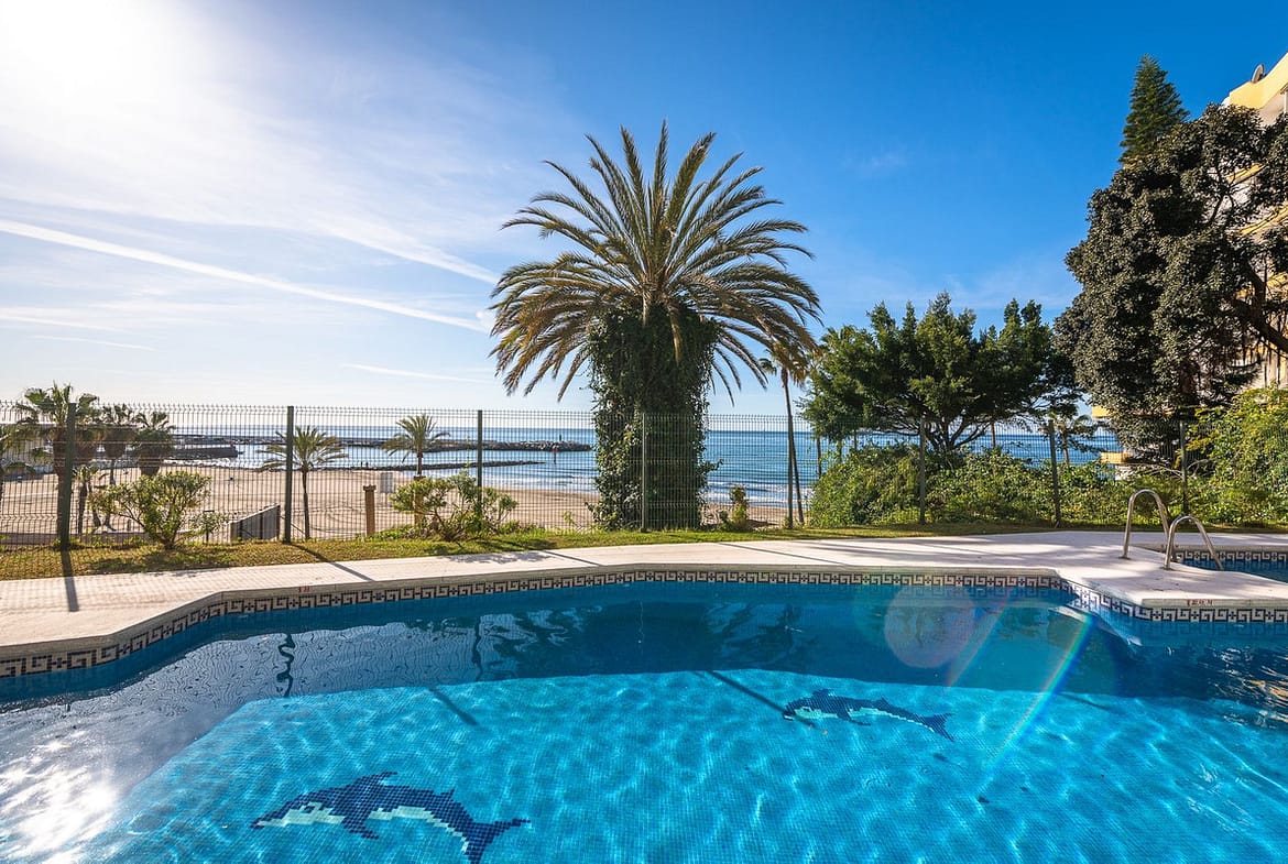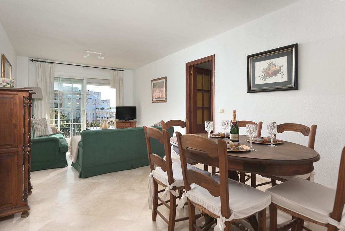 The apartment is on the 3e floor in a good urbanisation (EMBAJADA) with a nice communal pool, and even from that pool you have views to the sea and the port.