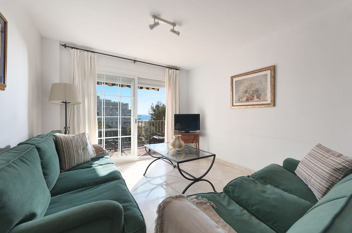The apartment is on the 3e floor in a good urbanisation (EMBAJADA) with a nice communal pool, and even from that pool you have views to the sea and the port.