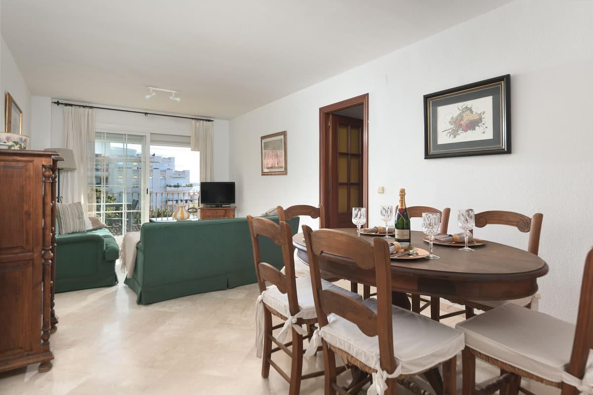 Great apartment to RENT with 3 bedrooms and 2 complete bathrooms (bath and shower), with an ideal terrace overlooking the port of Marbella, includes underground parking space, in first line beach in La Bajadilla. Perfect views to the port, the sea, and to the beach and the promenade !