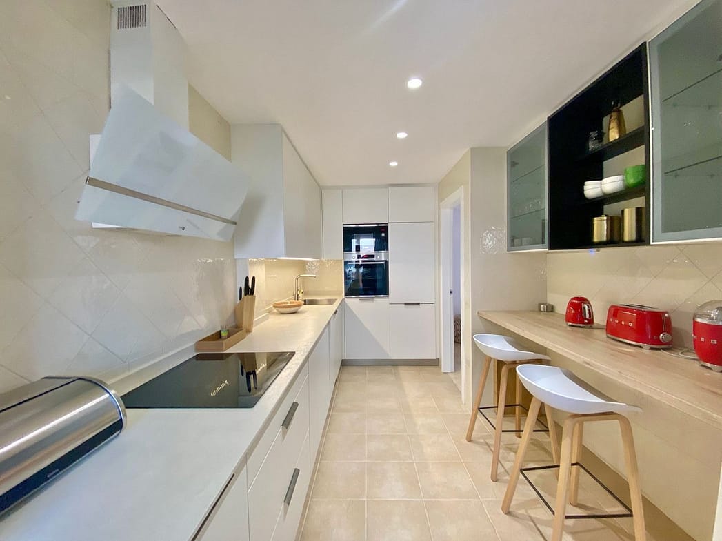 The apartment offers a fully equipped modern kitchen with a dedicated laundry area, including a washing machine and dryer. Inside, you'll find all the comforts of home, including a coffee machine, dishwasher, and oven/microwave. Amenities include air-conditioning hot /cold throughout,UF heating bathrooms, free high-speed WiFi, and underground parking. Free on-site parking and access to 3 large communal pool areas, complete with sun loungers, outdoor showers, and lush, colorful gardens that invite you to relax and unwind in a serene setting.Gated, secure 24/7 community with a family-friendly atmosphere.