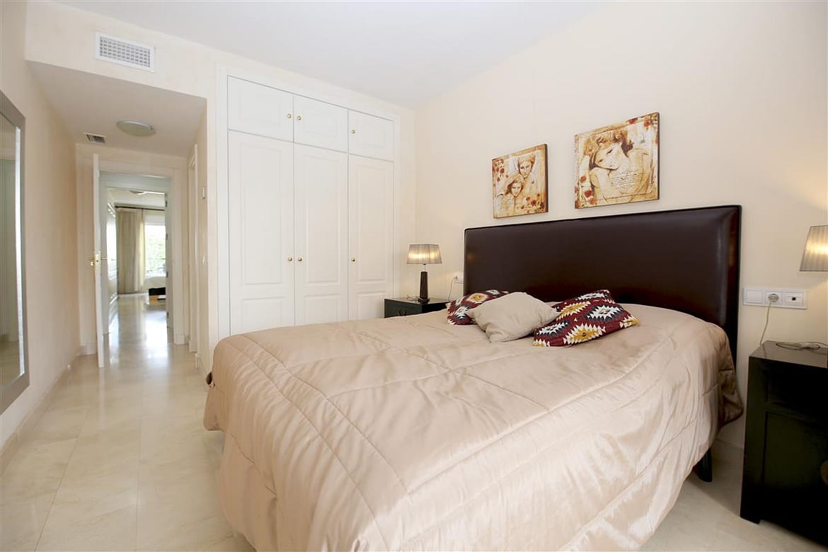 A family friendly apartment perfect for a family of six who want to stay right next to the beach, close to restaurants, and San Pedro centre. It has three bedrooms: an en-suite master bedroom with a super king-size bed, a second en-suite king-size bedroom and the third bedroom with two single beds. Both bathrooms are en-suite with a bathtub with an overhead shower, WC, sink and bidet. The second bathroom has a separate shower, WC and sink. There is a spacious living room with sofas and direct access to the furnished balcony with awning and an outdoor dining area with space for six guests plus relaxer seating for everyone. The kitchen in this property is open to the lounge area and is fully equipped with quality appliances. This is a comfortable property with a high speed fibre optic Wifi along with international TV including Sky and a central air conditioning system in all bedrooms and living room. From the second bedroom, there is access to a smaller balcony with views of the communal garden and pool and an extra table with four chairs. There is a communal swimming pool within the urbanisation, surrounded by beautiful and well-maintained gardens. Private parking is also available in the underground garage of the complex. In conclusion, this apartment provides everything you need for a relaxing family holiday close to the beach and all facilities.