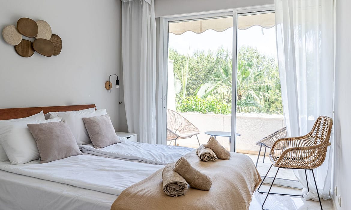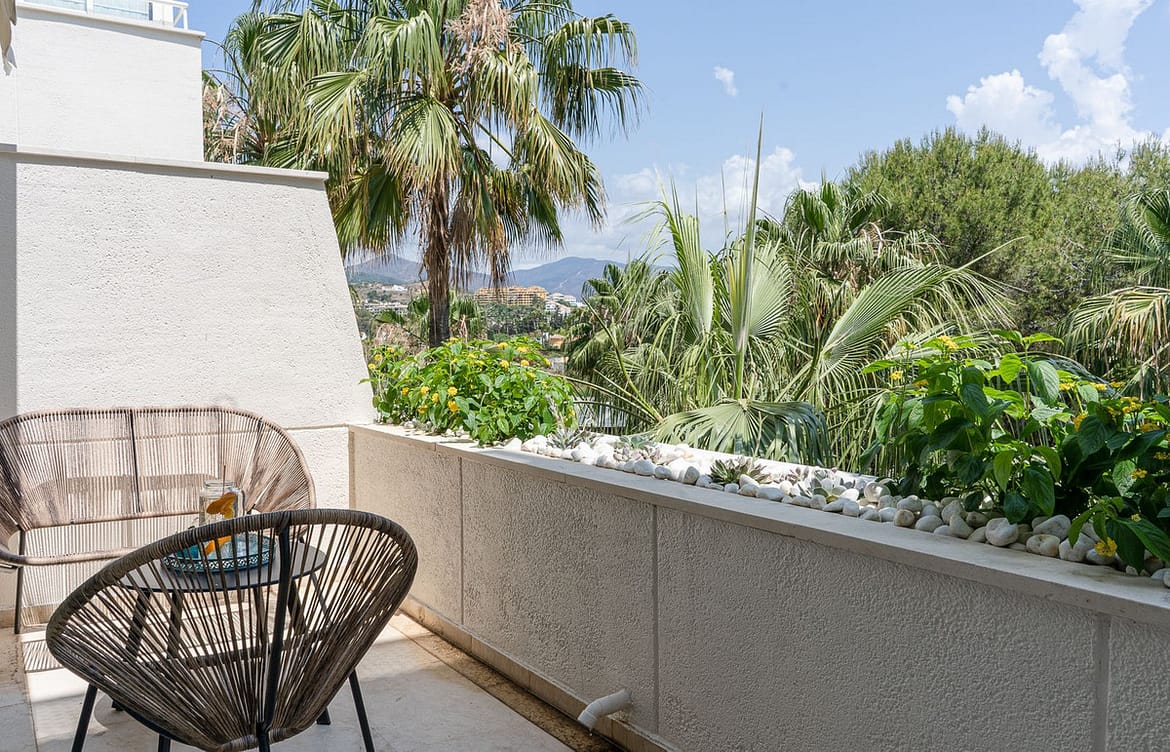 This modern and stylish apartment opens up to a terrace with fabulous views overlooking the Mediterranean Sea and landscaped gardens.