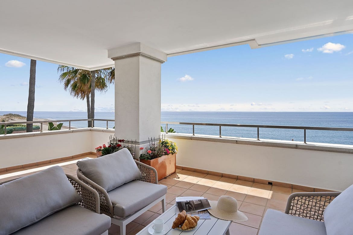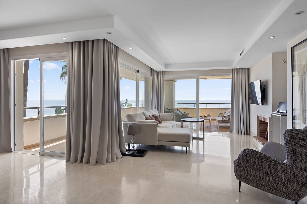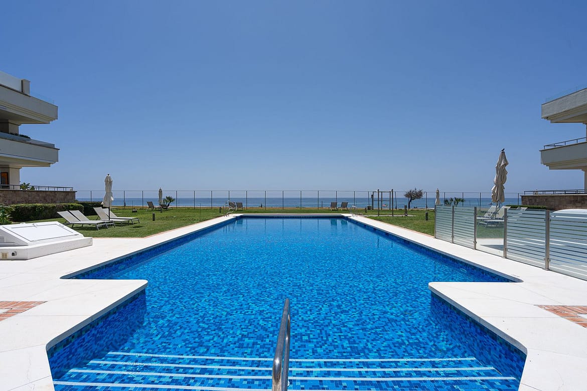 "Heaven Beach" is a very quiet urbanisation, allowing you to wind down in one of its gardens, where you'll find pools, a sauna and a gym. Whether you are on your terrace or in the garden, you'll be as close to the beach as one can be. The urbanisation has its own entrance onto the beach "Playa de Guadalmansa". Walking alongside the beach, you will see a nearby "chringuito" (beach bar) "Barraka Beach Marbella" and a kitesurfing school. The urbanisation has 24-hour security, a concierge and is free of roads, car parks or other buildings, therefore offering safety and an undisturbed view of the Mediterranean Sea.