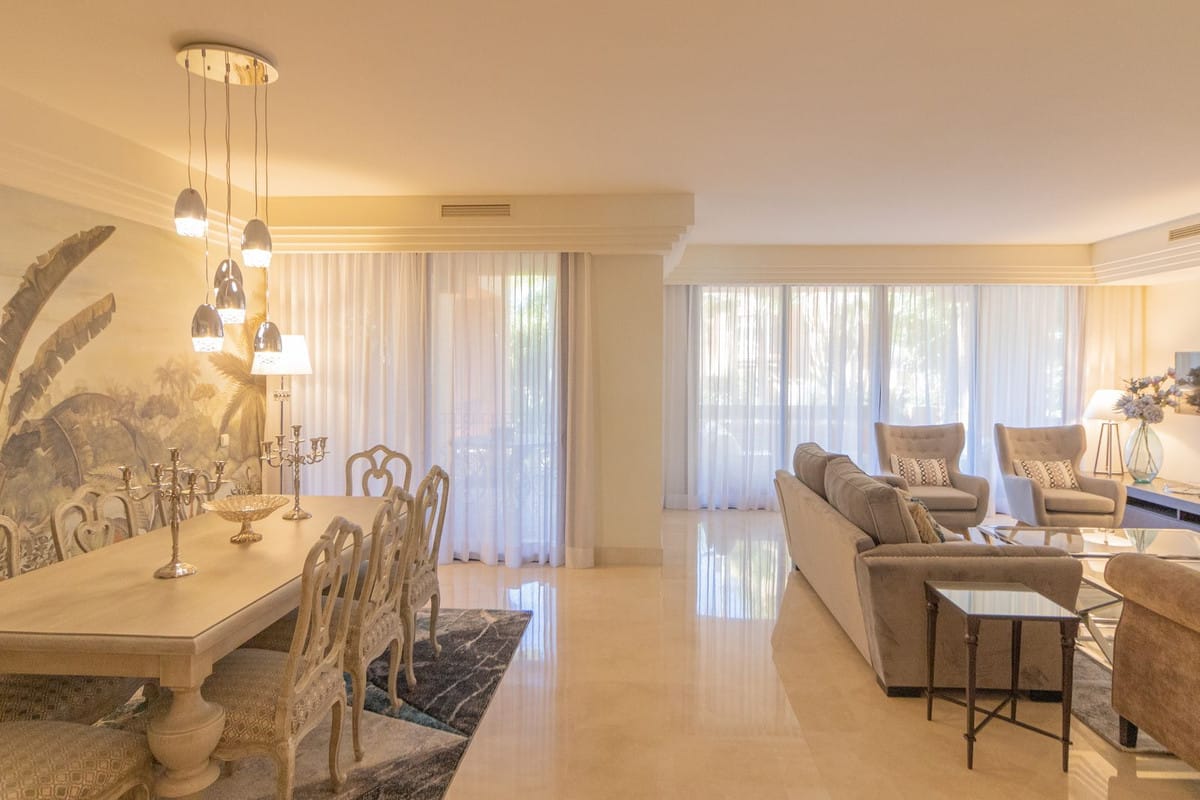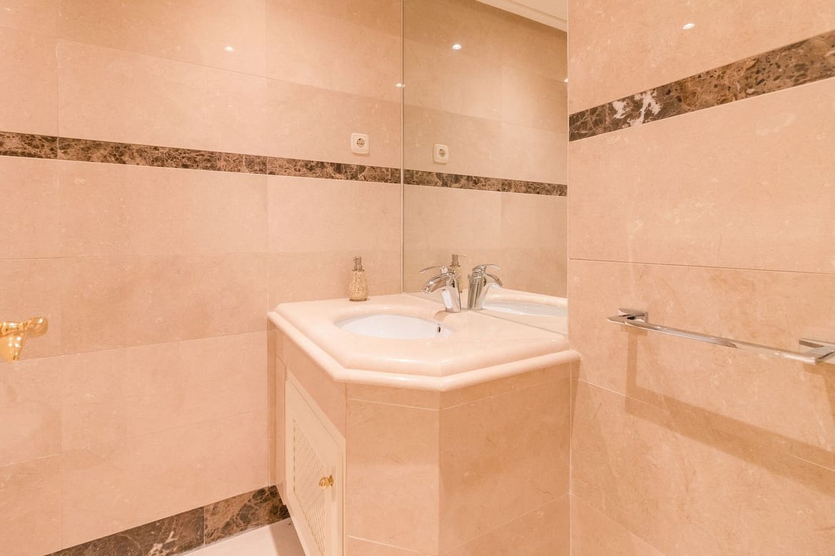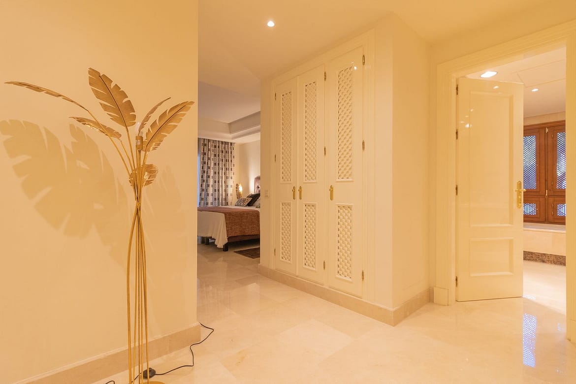This luxury flat features three bedrooms with fitted wardrobes, ensuring optimal storage space. Furthermore, there are two bathrooms and a guest toilet, providing comfort for the whole family and an entrance hall.