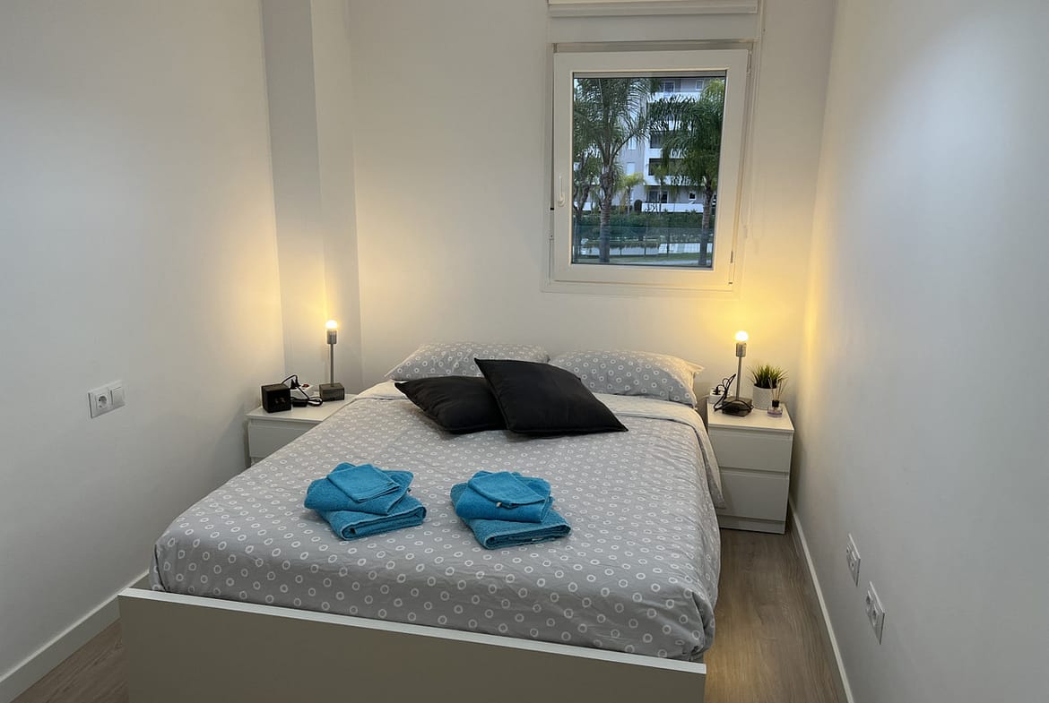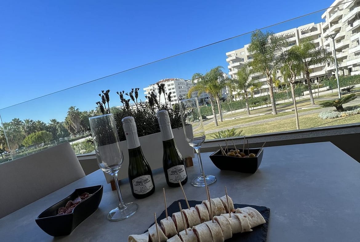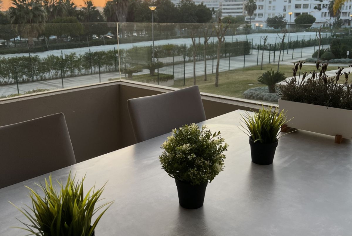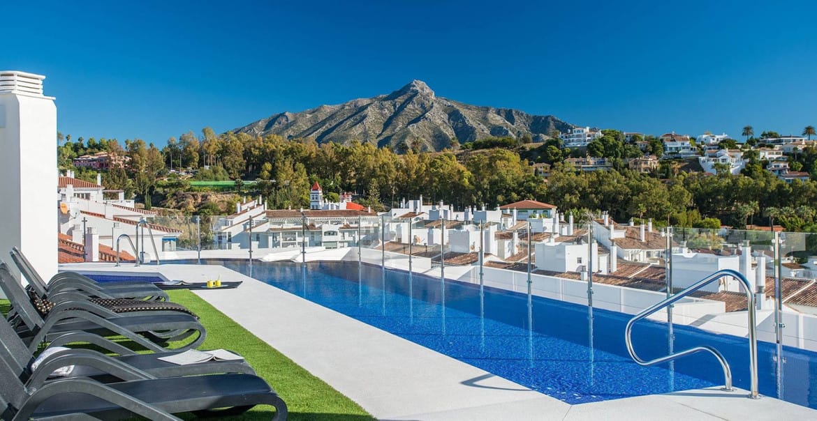 Modern spacious 3 bedroom flat with 2 bathrooms, located in Nueva Andalucia at 45km from Malaga airport and 3,5 km from Puerto Banus, within walking distance of restaurants and shopping.The living room with dining area, a fully equipped kitchen and a separate laundry room. The living room has wifi and a television where the family can spend a pleasant time in this cozy flat.The view from the terrace has out on the beautifully maintained garden.The swimming pool is on the top floor with breathtaking views of La Concha.