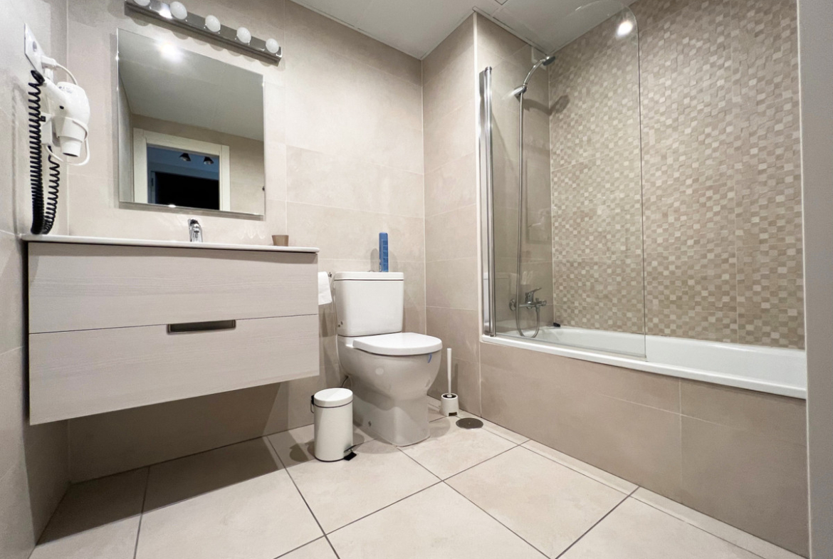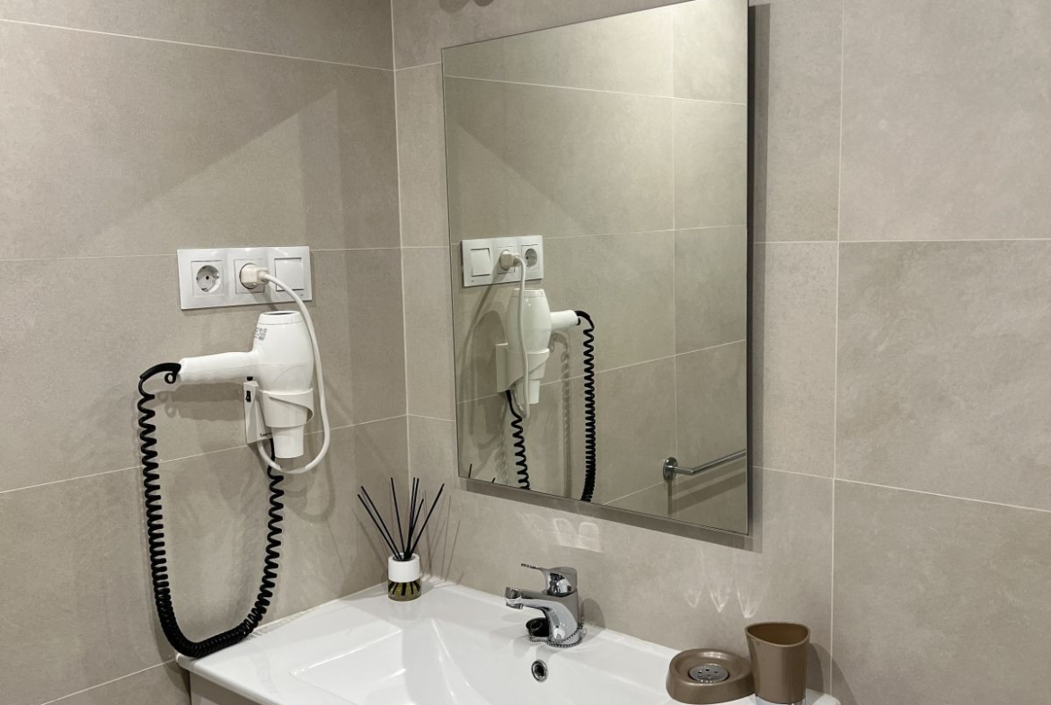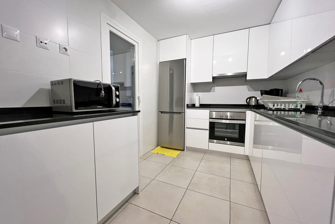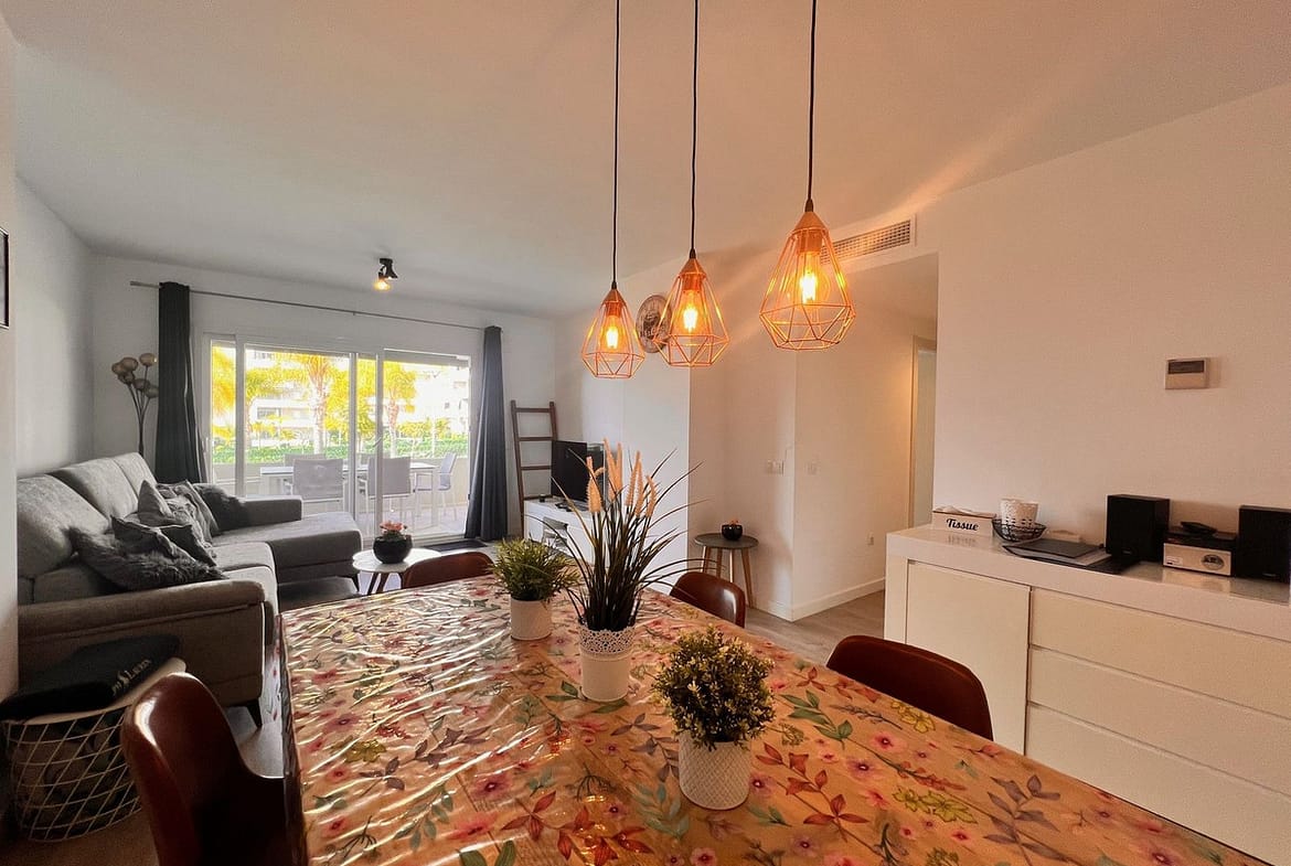 Modern spacious 3 bedroom flat with 2 bathrooms, located in Nueva Andalucia at 45km from Malaga airport and 3,5 km from Puerto Banus, within walking distance of restaurants and shopping.The living room with dining area, a fully equipped kitchen and a separate laundry room. The living room has wifi and a television where the family can spend a pleasant time in this cozy flat.The view from the terrace has out on the beautifully maintained garden.The swimming pool is on the top floor with breathtaking views of La Concha.
