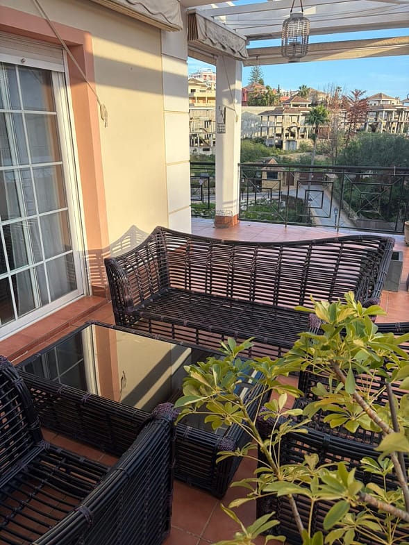 Elegant 3-bedroom apartment located in the sought-after Rivergarden urbanisation in Nueva Andalucía, offering beautiful views of the communal pool and landscaped gardens.