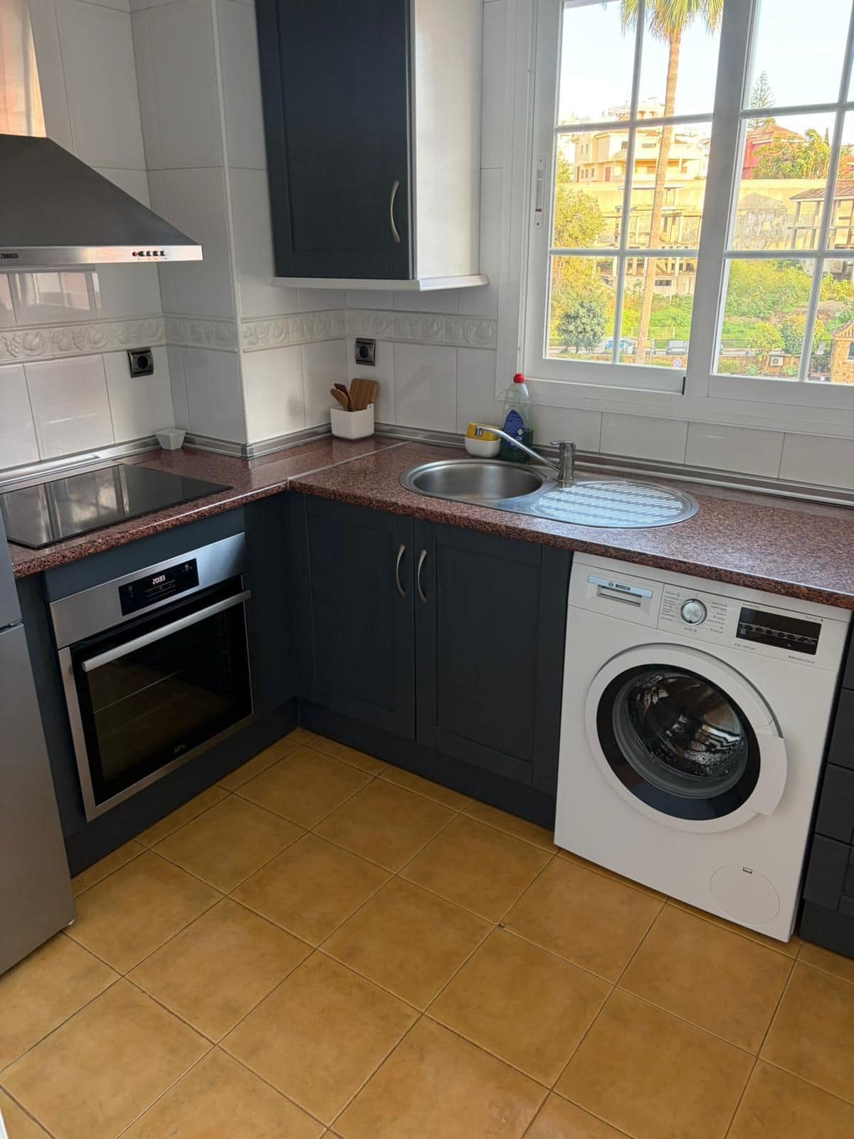 The property features 3 spacious bedrooms, 2 bathrooms, a bright and inviting living area with large windows that bring in natural light, and a fully equipped kitchen. The living space opens onto pleasant views of the urbanisation’s gardens and pool, creating a peaceful and relaxing atmosphere. A private parking space is also included for added convenience.