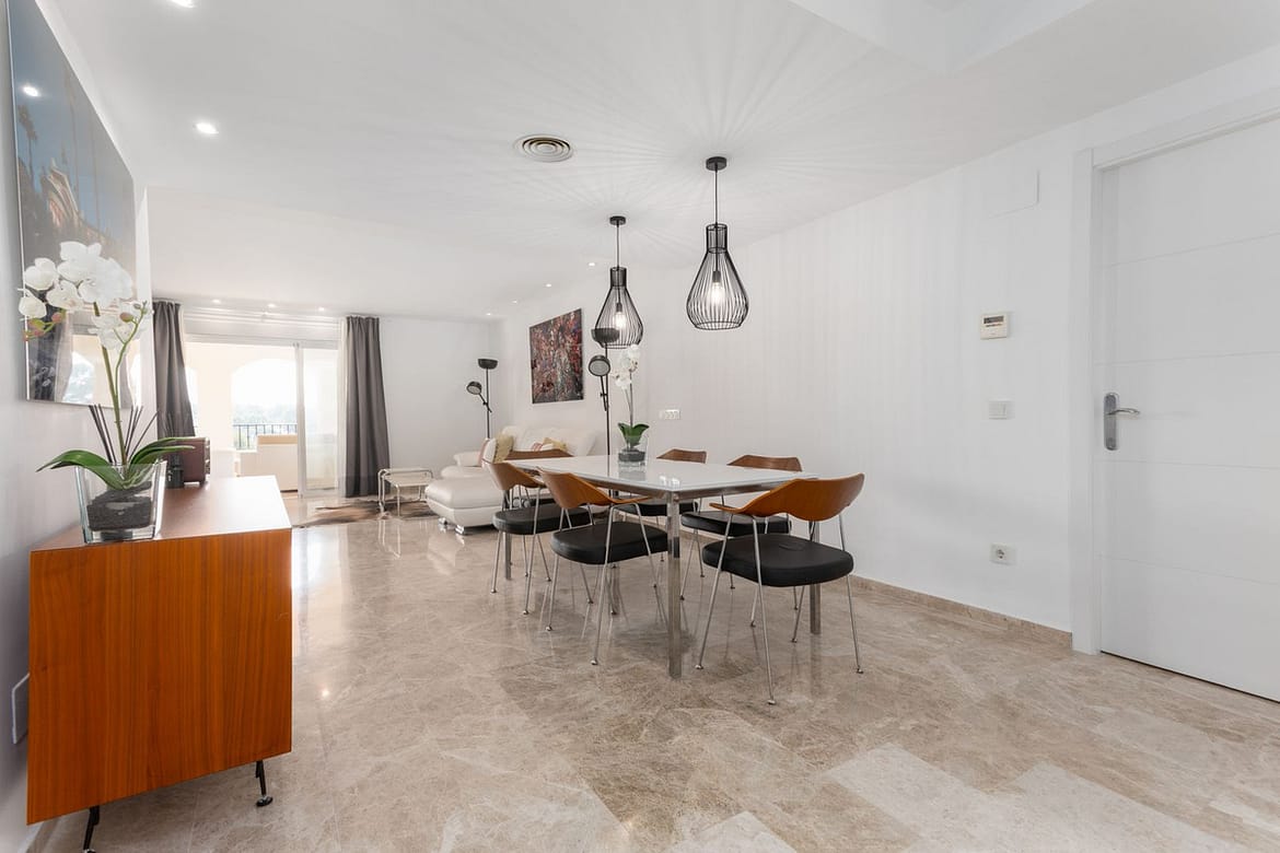 Inmaculated second floor apartment located in the urbanization of Puerto Golf, in Nueva Andalucía, right next to Mercadora, close to all kinds of shops and restaurants and only 4 minutes from Puerto Banus.