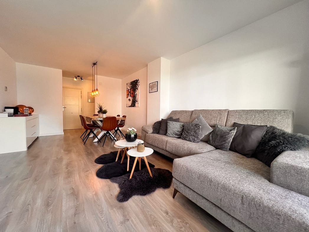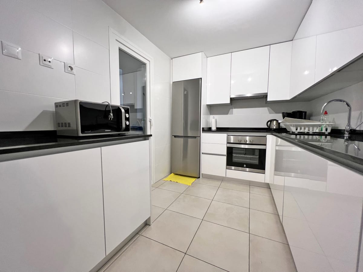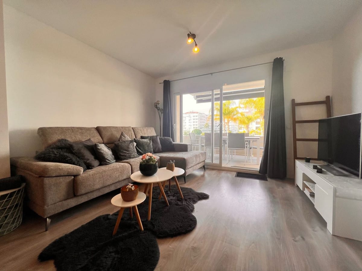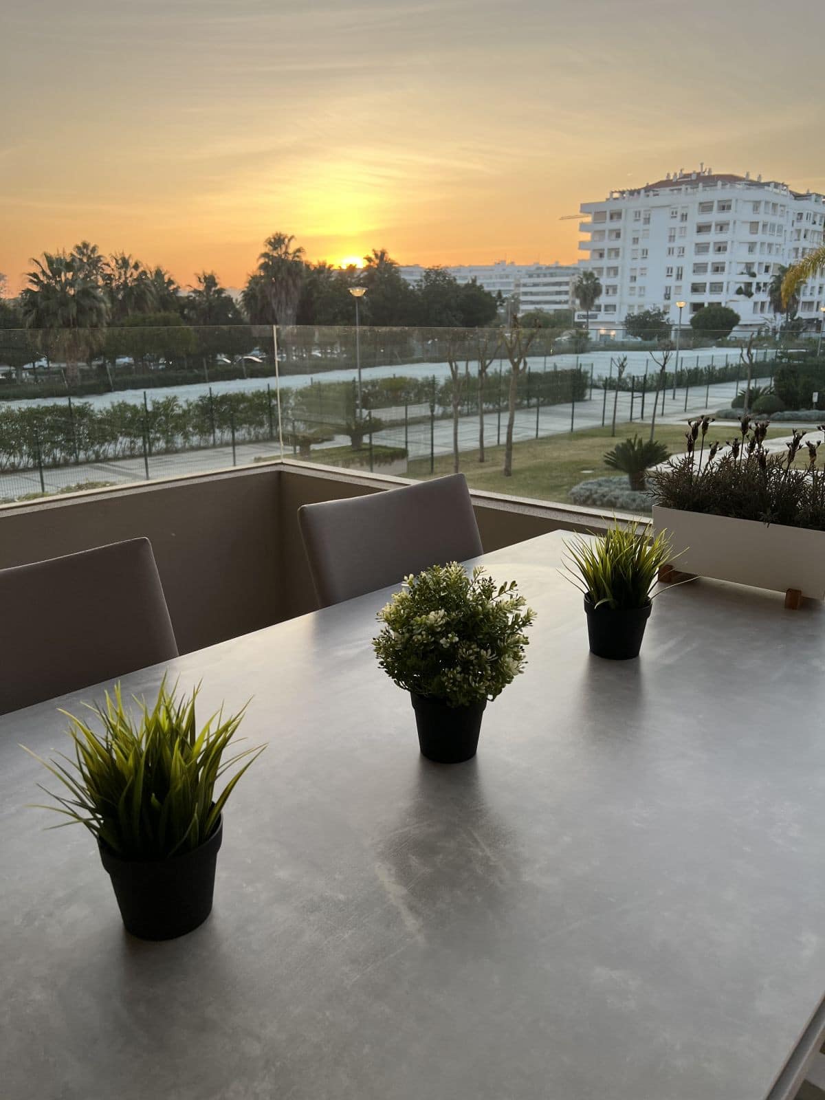 Modern spacious 3 bedroom flat with 2 bathrooms, located in Nueva Andalucia at 45km from Malaga airport and 3,5 km from Puerto Banus, within walking distance of restaurants and shopping.The living room with dining area, a fully equipped kitchen and a separate laundry room. The living room has wifi and a television where the family can spend a pleasant time in this cozy flat.The view from the terrace has out on the beautifully maintained garden.The swimming pool is on the top floor with breathtaking views of La Concha.