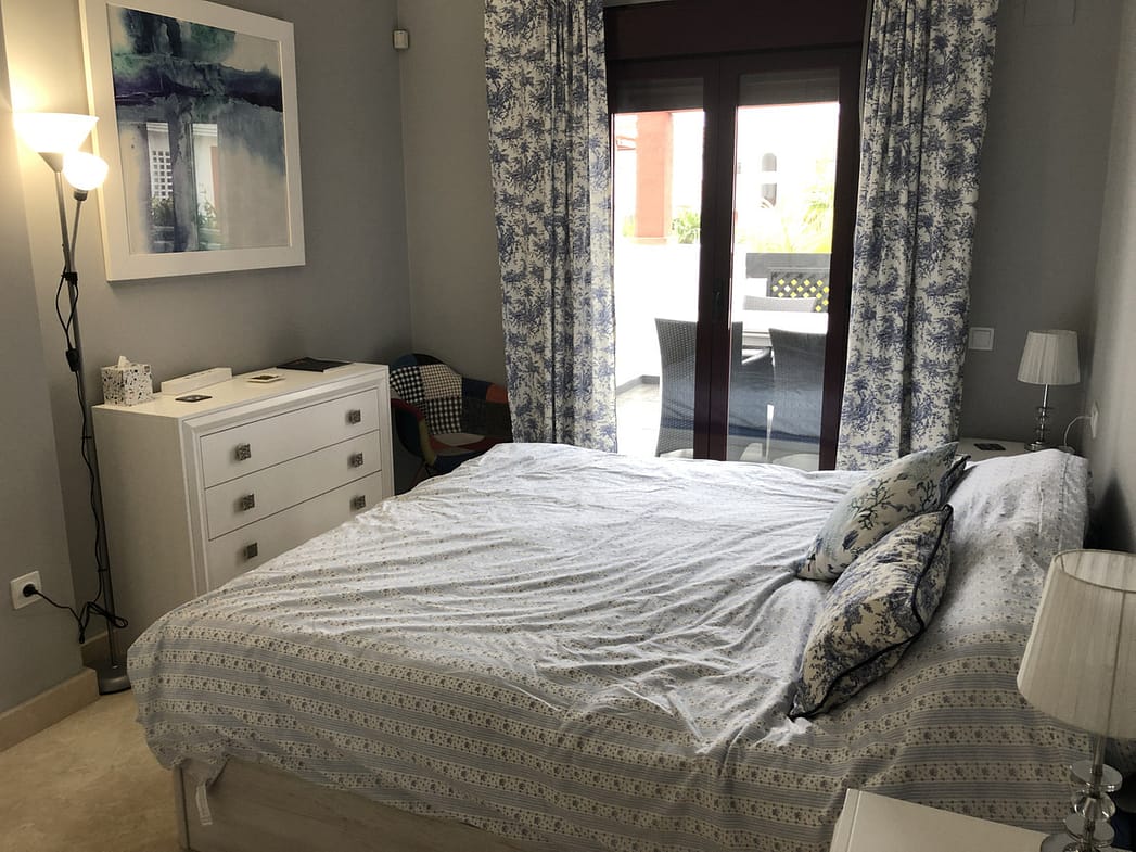 There are 3 double rooms in the property that accommodate 6 comfortably and in addition there is a sofa bed double in size in the living room so the apartment sleeps 8 easily. There is an ensuite bathroom which has recently been renovated to a very high standard,and family shower room which has also been renovated to a high standard and a guest WC. There is a flat screen TV and fibre optic in the living room. Dining table inside and outside and an outside sofa also. The kitchen is fully equipped with the best quality appliances and is modern black high gloss.