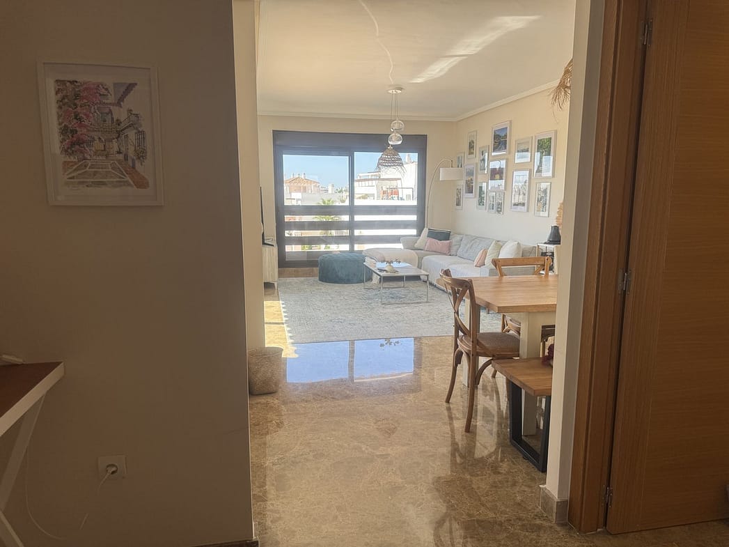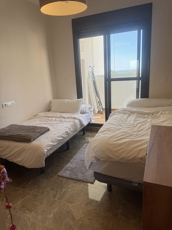 Wonderful home in Golf Hills, Selwo area. The property is very bright and has everything one could wish for. It has a living room with sea views, an open terrace of over 40m2 facing south-east, three spacious bedrooms with built-in wardrobes, a separate kitchen with a laundry room, a semi-enclosed covered terrace, and two full bathrooms, one of them en suite. All this in an apartment located on the New Golden Mile in an expanding area surrounded by luxury developments, where there is a golf course, a paddle tennis club and gym, a promenade that connects to the beach, and more. Golf Hills is a gated community with well-maintained and maintained communal gardens, a swimming pool, and a paddle tennis court.