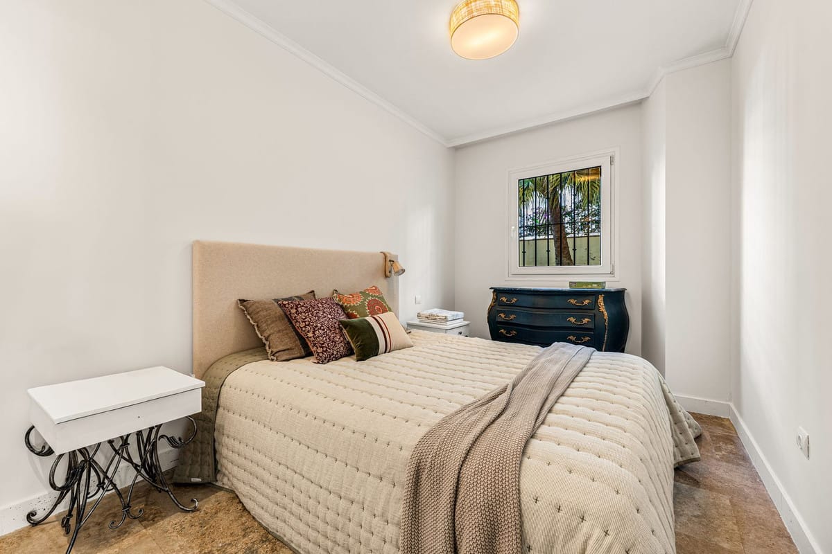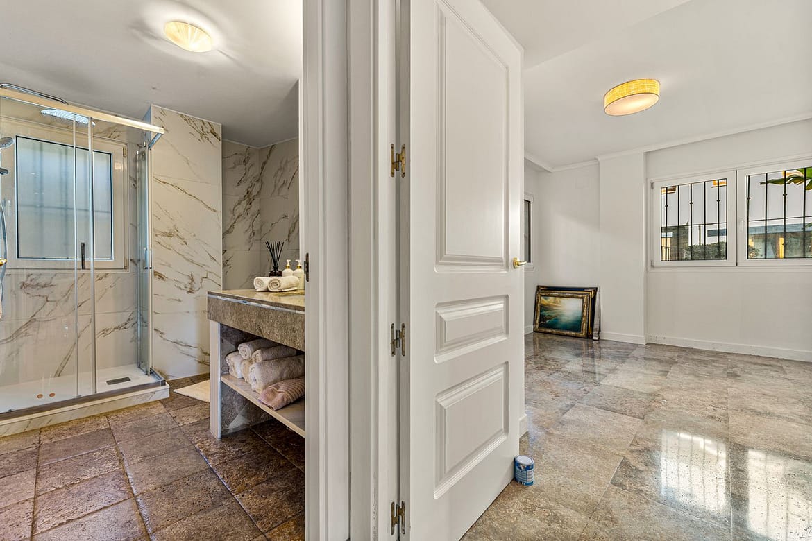 The apartment is partially renovated and ideally oriented to enjoy natural sunlight throughout the day while remaining cool during the summer months. It features three bedrooms, one of them with en-suite bathrooms, ample built-in wardrobes, and well-separated living areas that provide privacy and comfort.