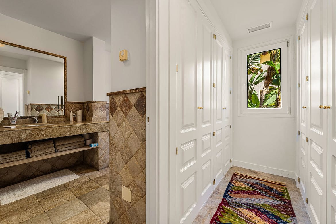 The apartment is partially renovated and ideally oriented to enjoy natural sunlight throughout the day while remaining cool during the summer months. It features three bedrooms, one of them with en-suite bathrooms, ample built-in wardrobes, and well-separated living areas that provide privacy and comfort.