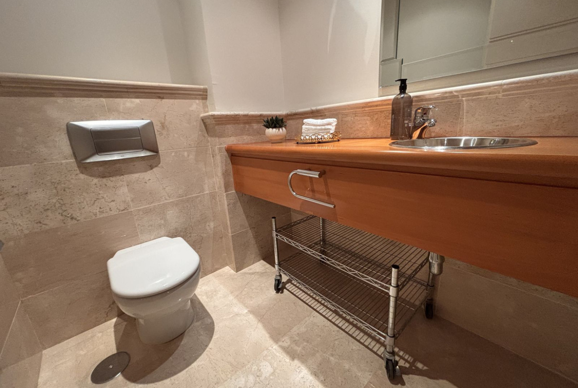 In the apartment you have a spacious living area with large dinning table and direct access to the terrace, a modern fully equipped kitchen with a separate utility room, also a guest toilet. There is split air conditioning and underfloor heating in the bathrooms.