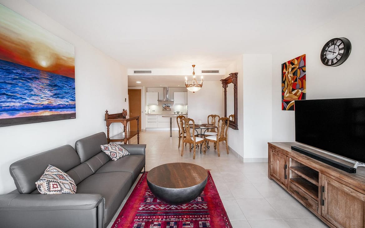 A unique opportunity to own a spacious, fully furnished apartment with exceptional views, rare parking capacity, and versatile outdoor living spaces in one of Marbella’s most prestigious residential communities.