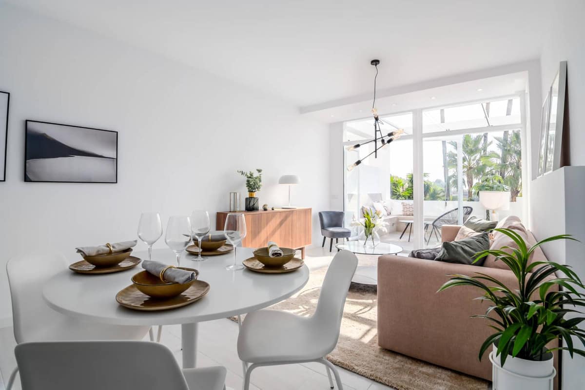 Elegant 3-bedroom apartment with sea views located in the peaceful and prestigious urbanization Mirador 1, just 200 meters from the entrance of La Quinta Golf and 100 meters from the renowned 5-star Westin Hotel. This beautifully renovated first-floor apartment is ideal as a luxurious holiday retreat or a comfortable permanent residence.