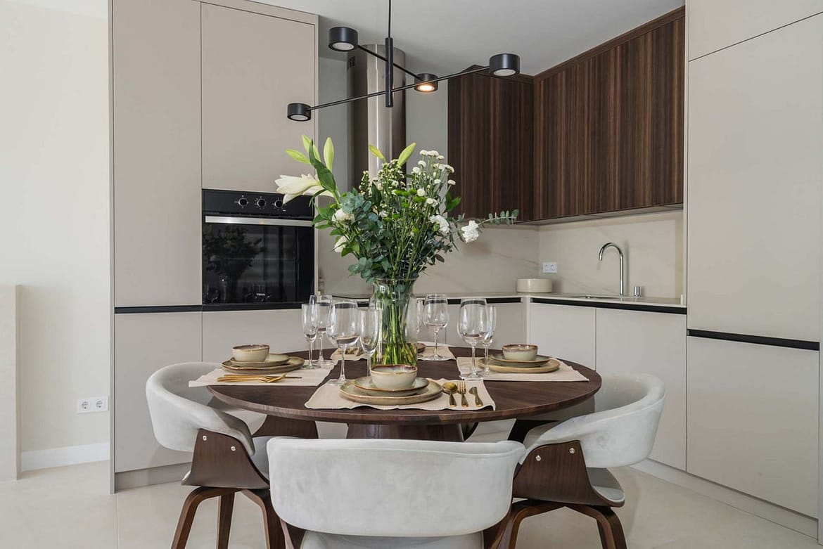 The open-plan layout connects a fully equipped kitchen with a bright and inviting living area – perfect for entertaining or family gatherings.