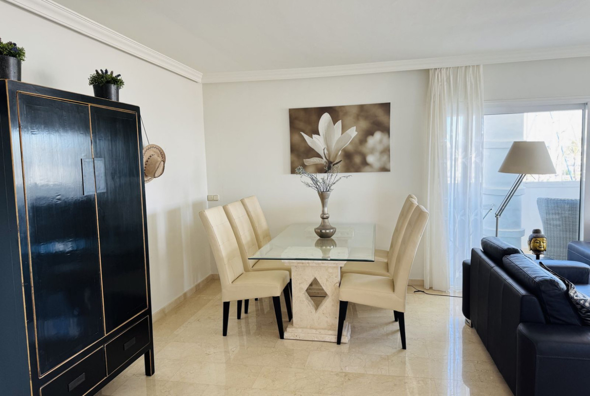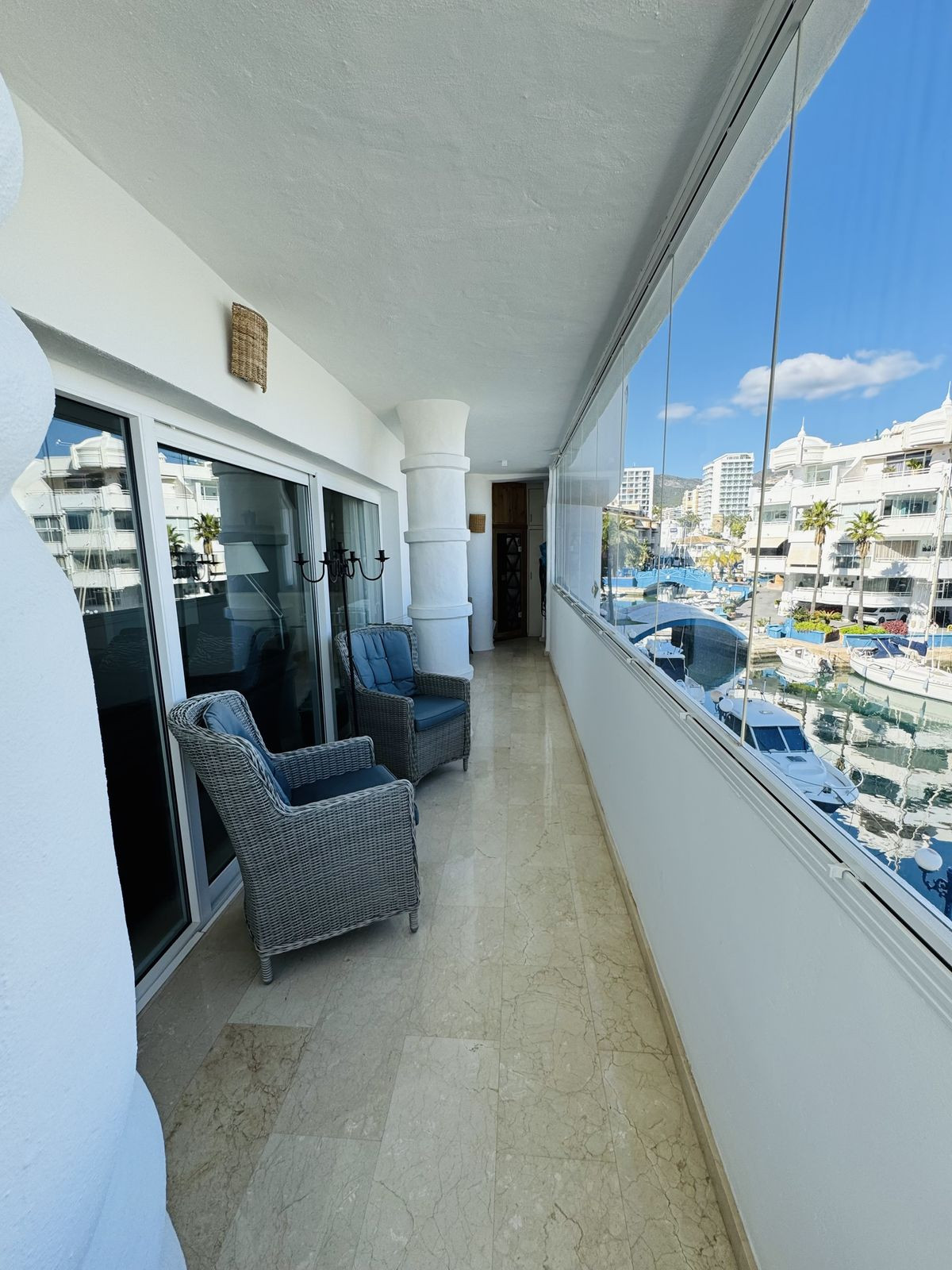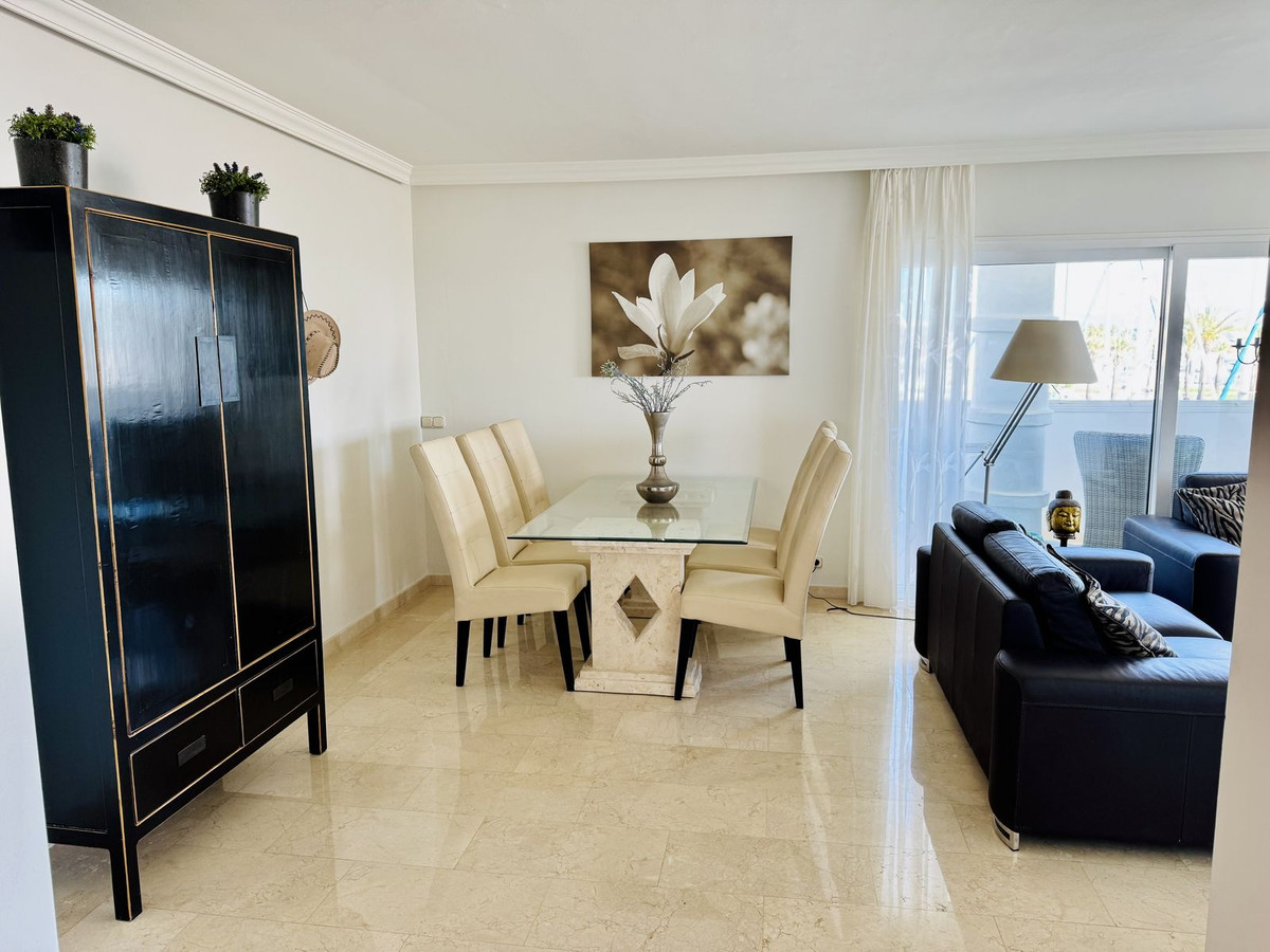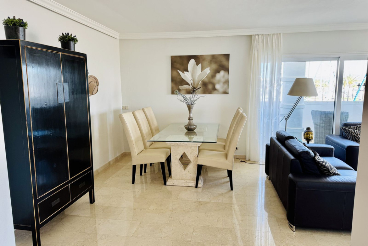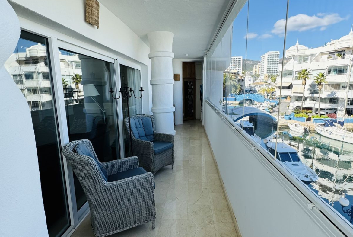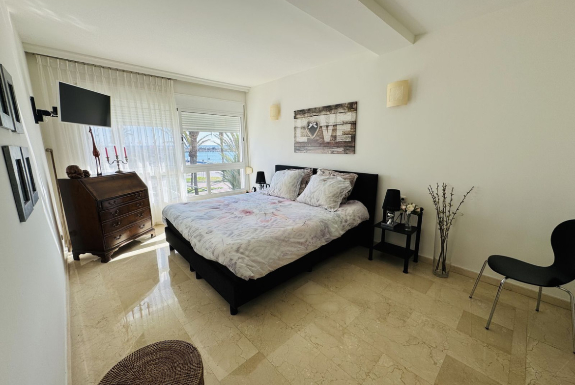 Built in 1990, this well-maintained apartment is located on the 1st floor of a building with an elevator that leads to the roof terrace, where the communal pool is located. With an east orientation, hot/cold heating and air conditioning, it guarantees comfort throughout the year. Puerto Marina, awarded the Blue Flag for Clean Seas in Europe, is the ideal place to enjoy coastal life. Don't miss this unique opportunity!