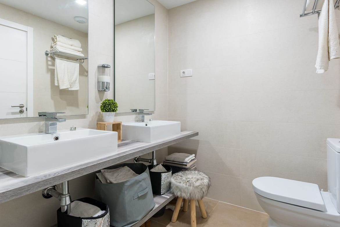 *Master Bathroom: A modern ensuite with double sinks, a walk-in shower, and a toilet for added luxury.