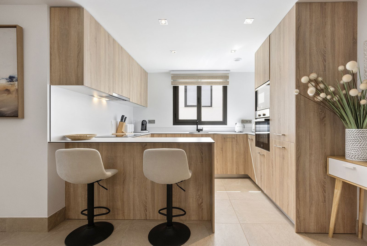 Large sliding doors lead out to the impressive 40m2 terrace, which features discreet storage space and extends your living outdoors, ideal for enjoying the Mediterranean climate.